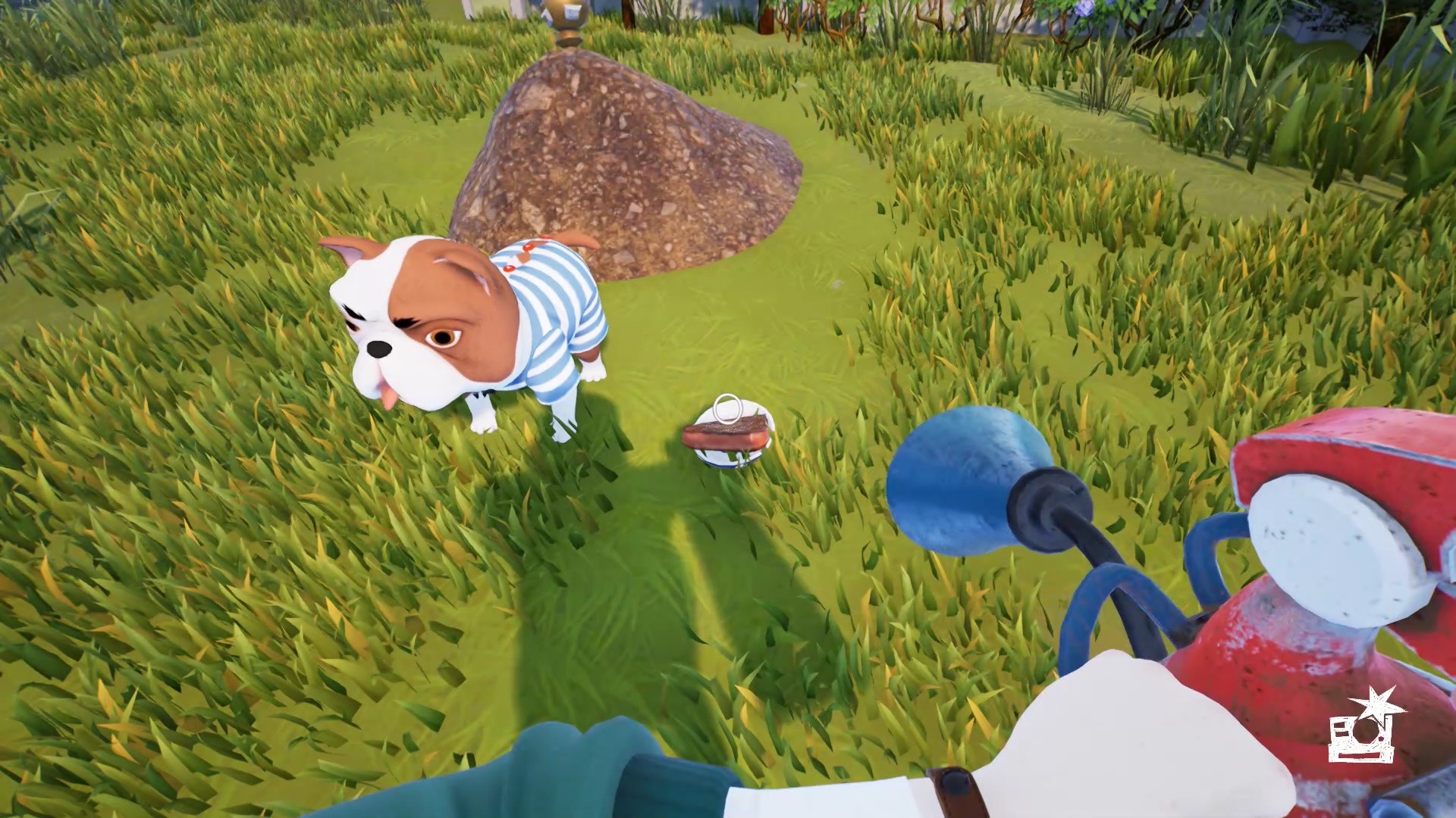Récupérez un extincteur dans la cuisine du rez-de-chaussée. Dirigez-vous dans la terrasse à gauche du piano. Éteignez le barbecue avec votre extincteur et récupérez la viande. Dans le jardin, un chien garde une motte de terre avec un spectre. Mettez la viande dans la gamelle du chien pour détourner son attention.