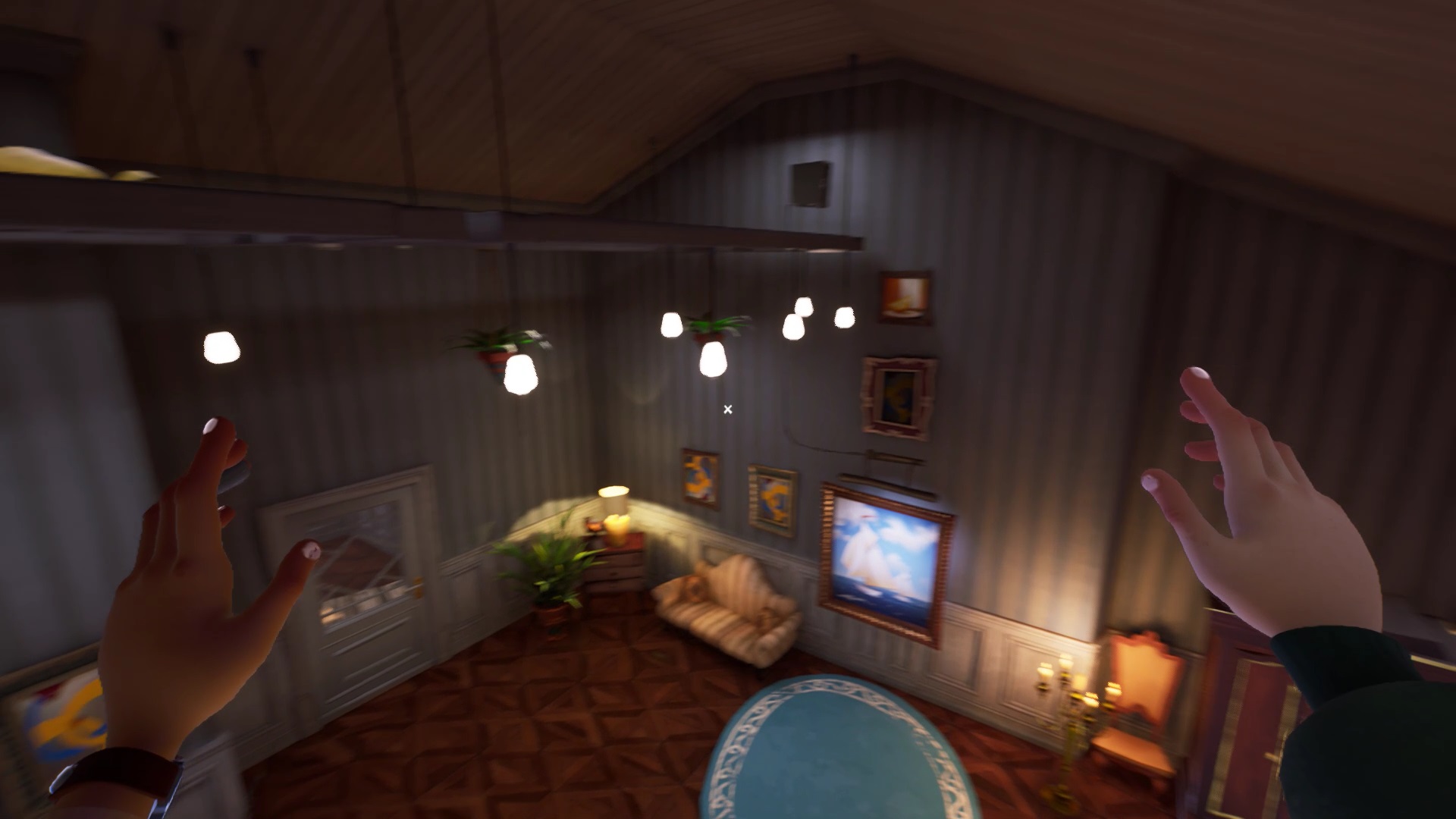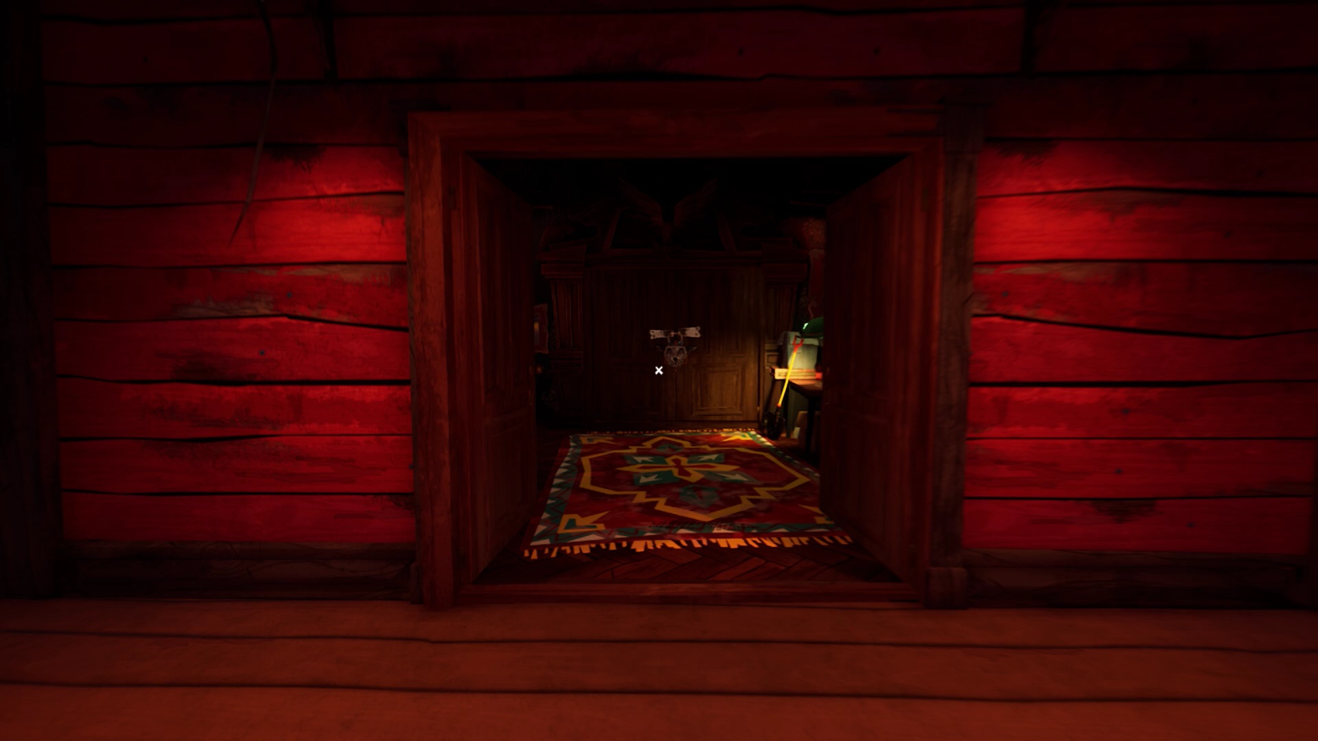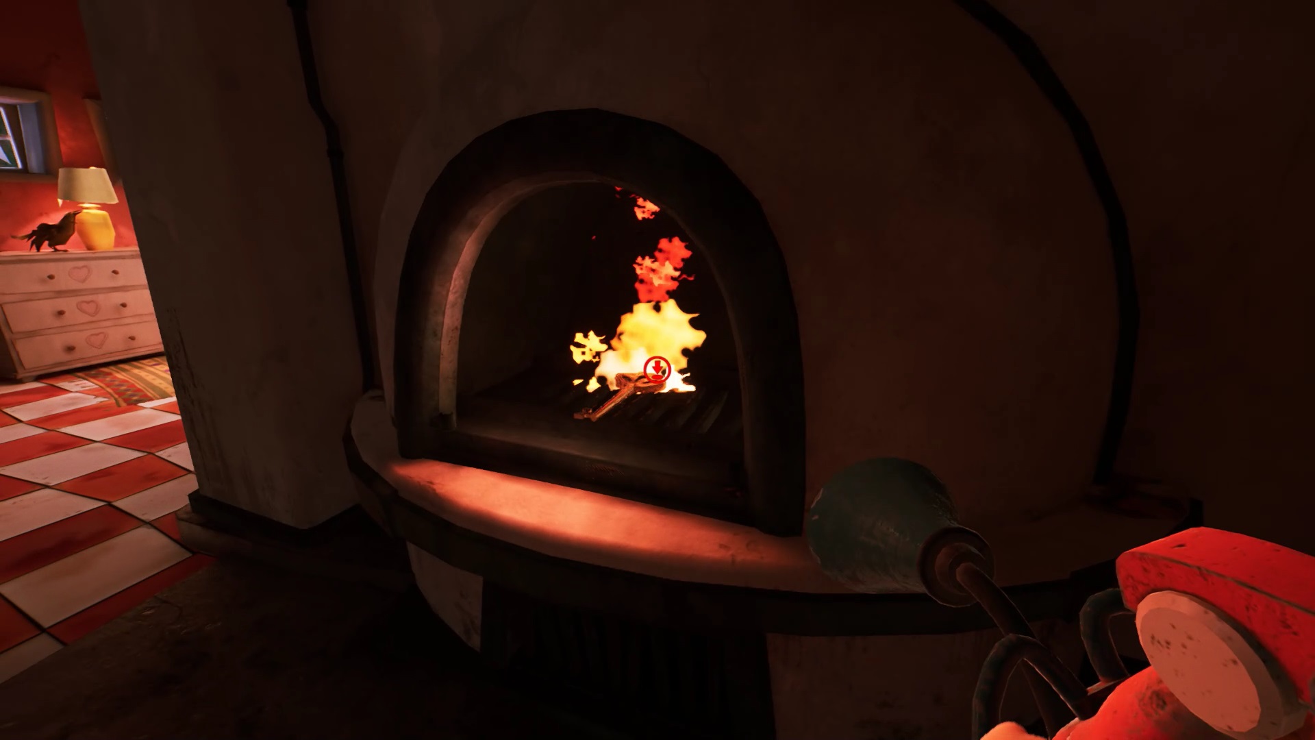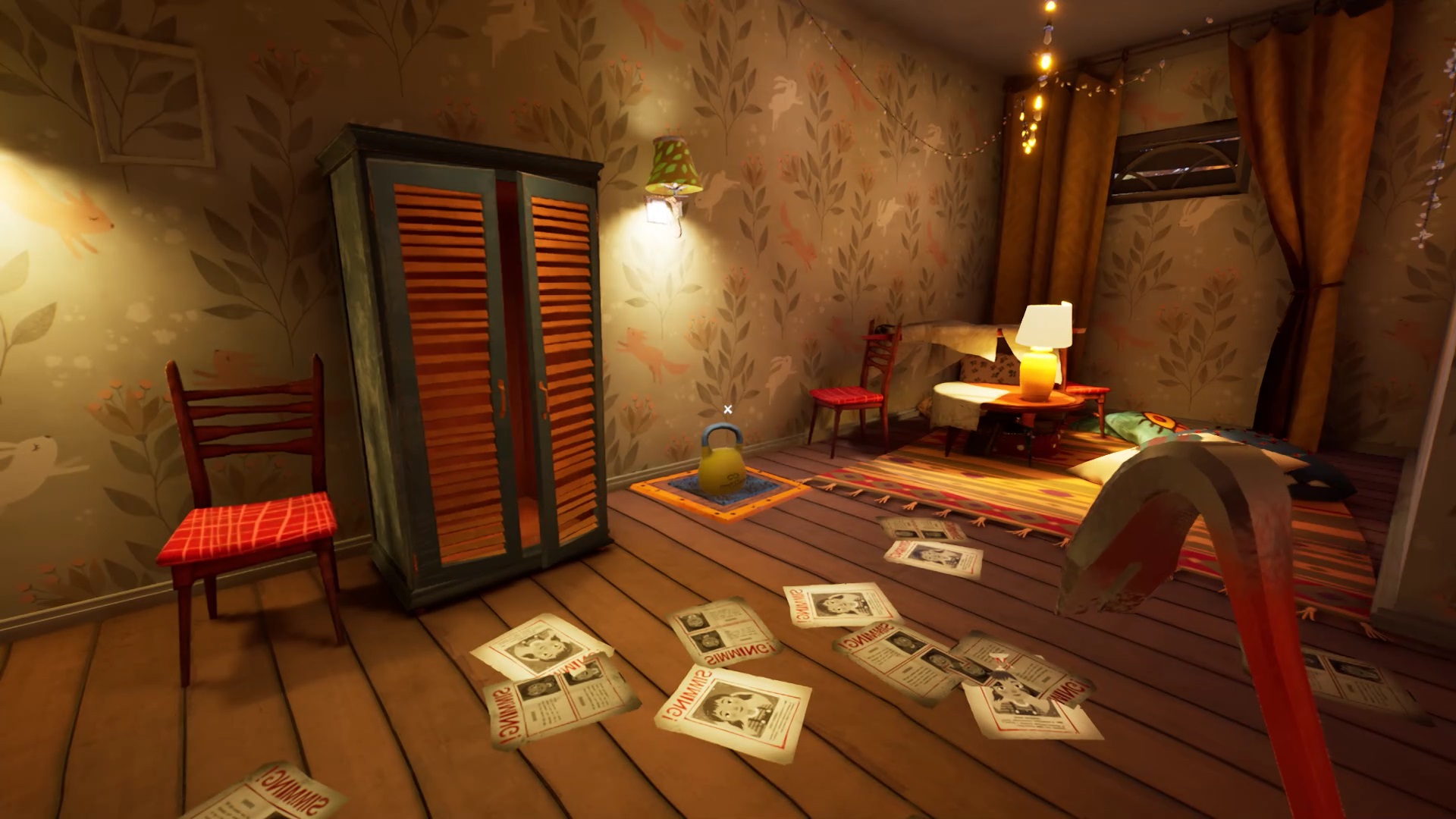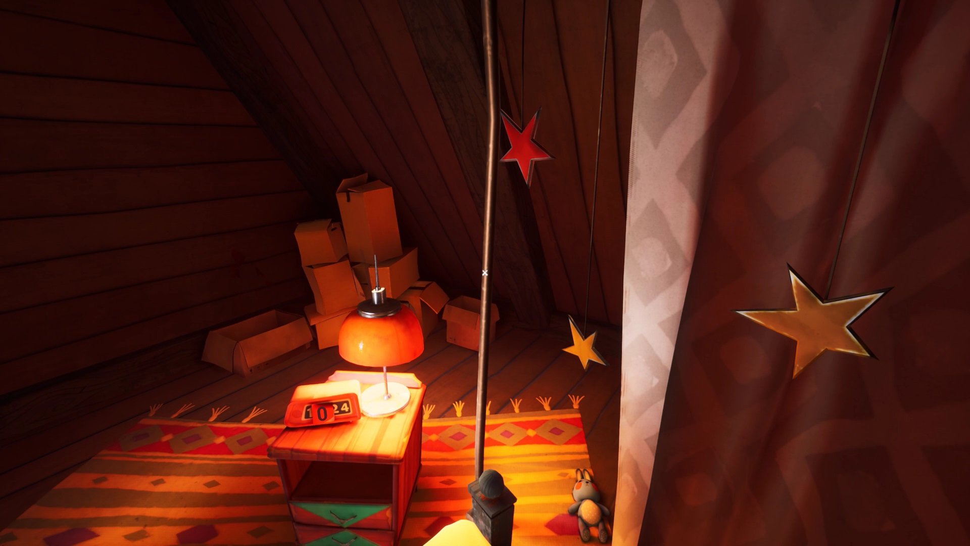 Une fois que vous avez placé toutes les têtes d’animaux, vous avez accès au grenier. Montez pour découvrir une cage fermée à clé. La clé se trouve sur le côté droit du grenier. Ouvrez la cage avec la clé pour lancer une cinématique.