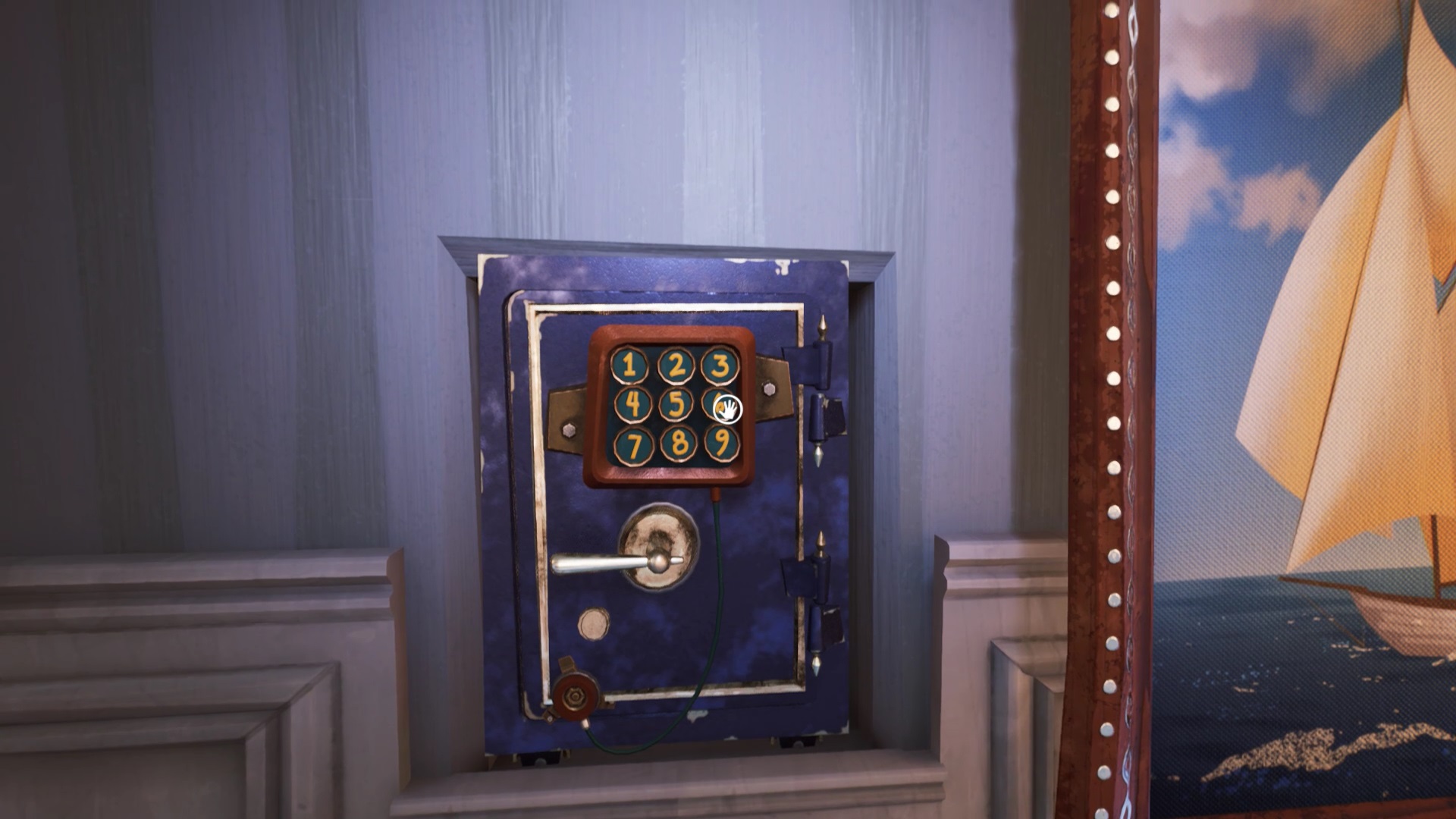 Au rez-de-chaussée, à droite des escaliers se trouve la salle de bain. Dans la baignoire, récupérez un bateau. Allez dans la salle à manger. Face à la table, vous trouvez un tableau avec des bateaux. Positionnez le bateau dans le mécanisme sous le tableau. Vous découvrez un code sur une photo de chien.