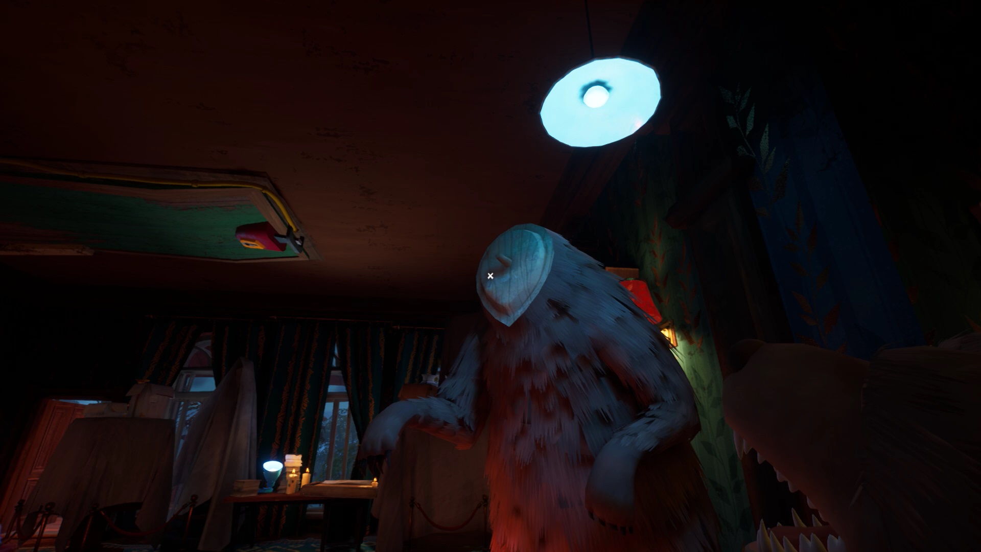 Dans la chambre du premier étage, sautez sur le lit pour atteindre le faux plafond blanc. Montez dessus pour trouver un trophée. Placez-le dans la salle des trophées sur l’emplacement 1.