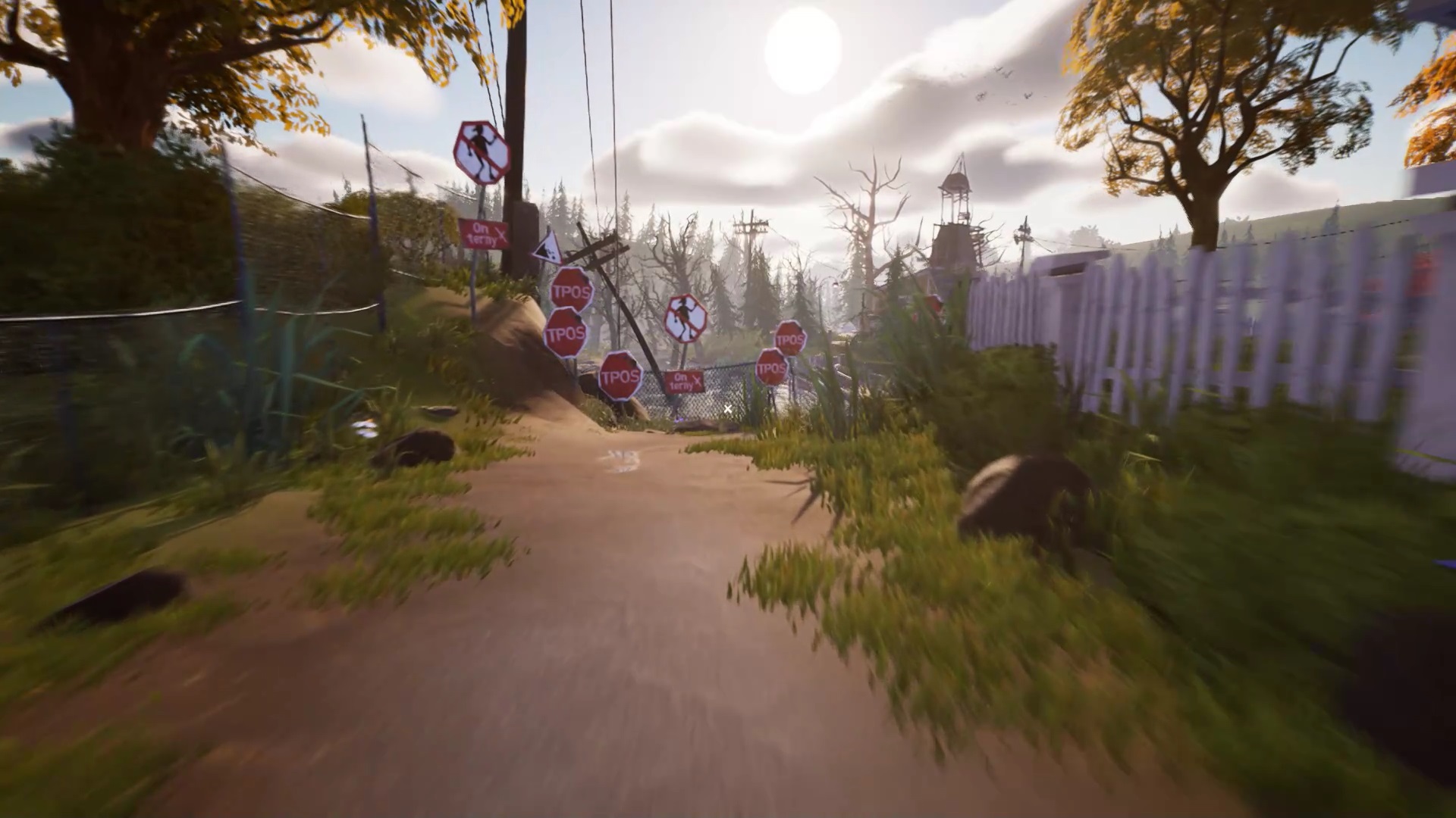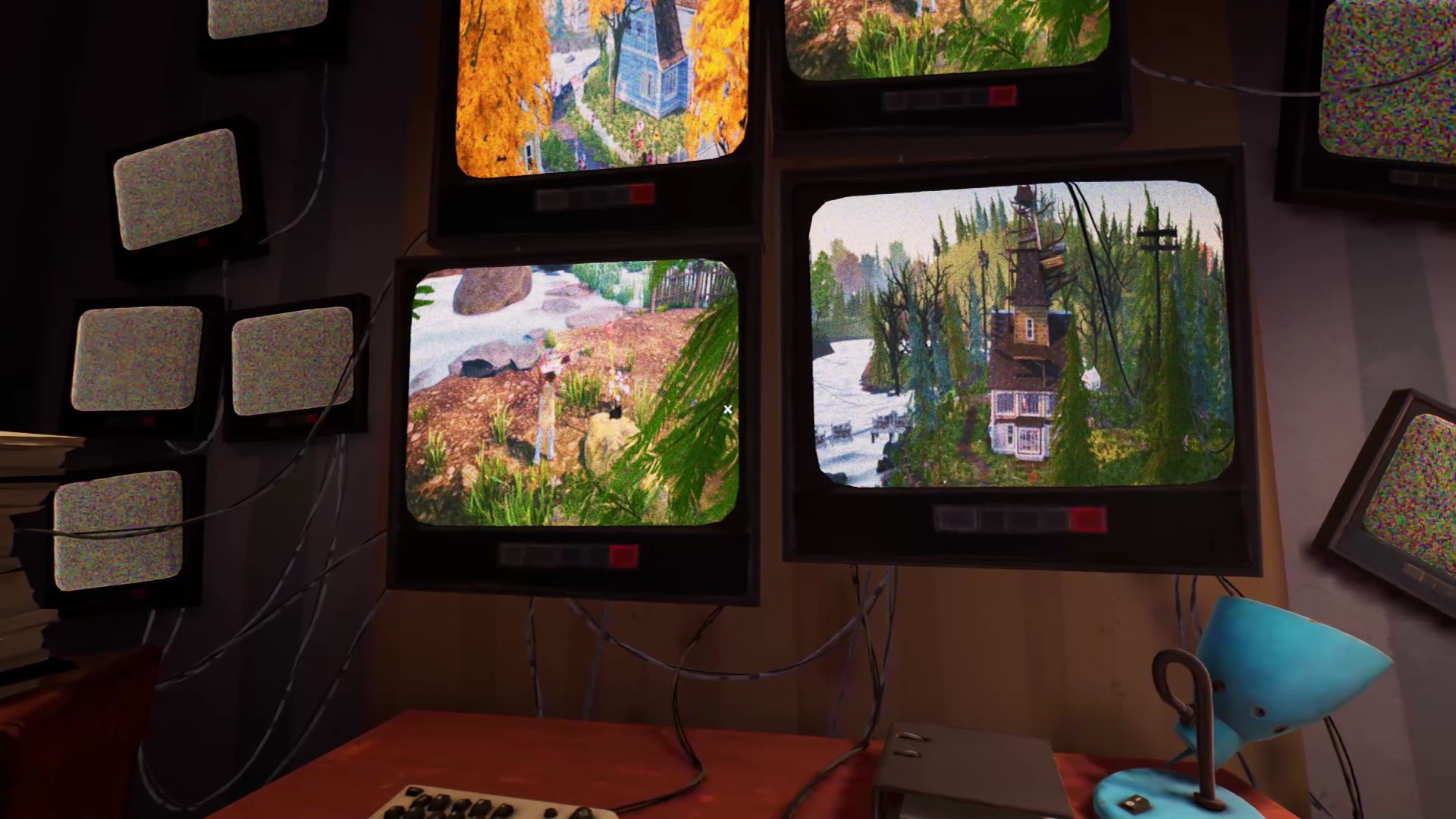 Après la cinématique, vous vous réveillez dans une station de radio. Regardez les écrans près du lit pour découvrir votre destination. Vous devez rejoindre une maison bleue où rôde un policier. Avant de vous y rendre, ramasser l’équipement sur le bureau. C’est une caméra et son mécanisme qui vous permettent de filmer un endroit spécifique et de surveiller vos arrières. Sortez de la tour radio pour vous rendre à la maison bleue. Elle se trouve près d’une intersection remplie de panneaux d’interdiction.