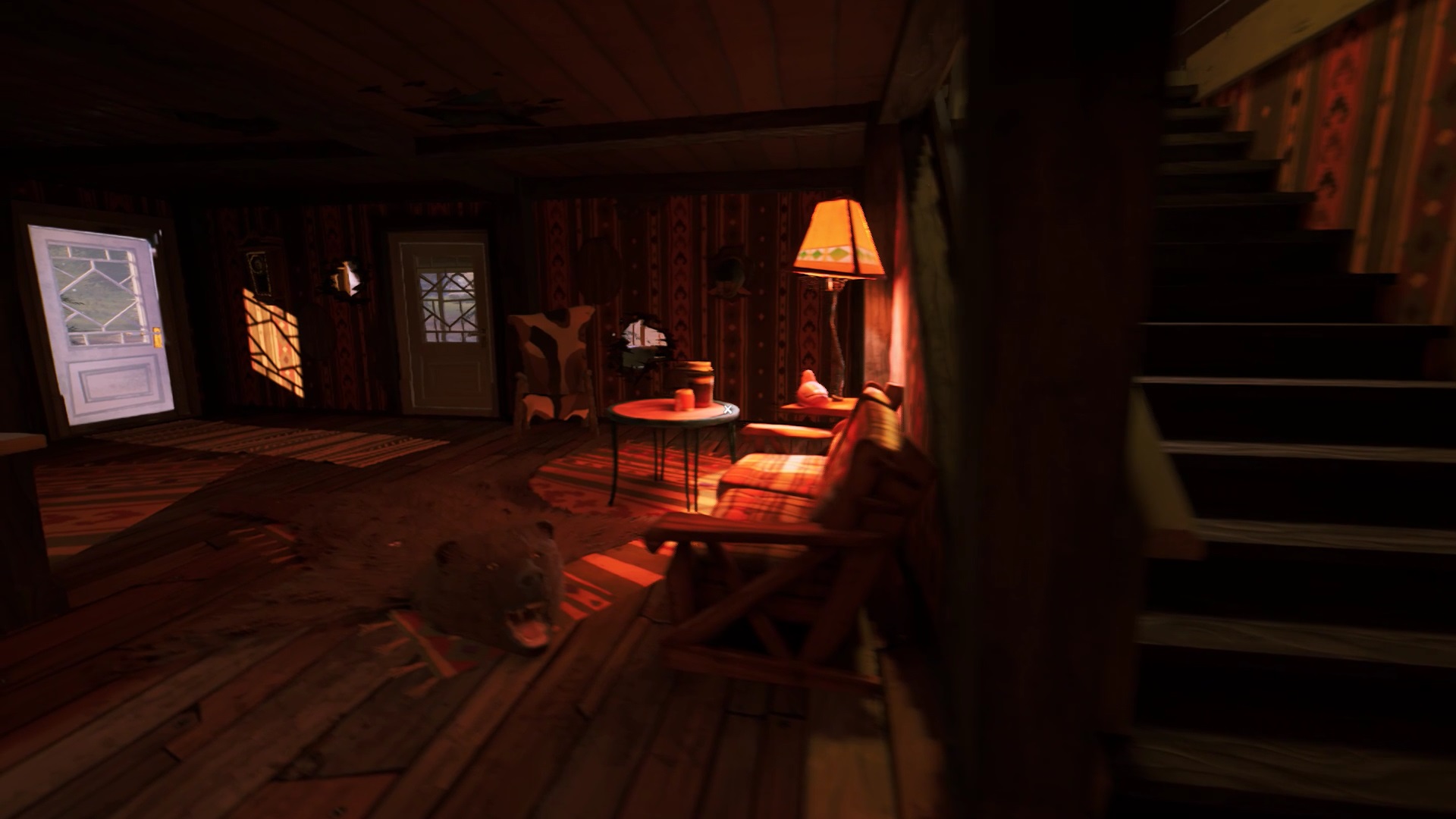 Soyez prudent, le chasseur vous tirera dessus s’il vous voit. La porte principale dispose d’une sonnette. Évitez d’entrer par ici. Au contraire, utilisez le bruit de porte pour attirer le chasseur. Contourner la maison pour trouver une entrée plus discrète. À l’étage, inspectez un plan sur un mur de Liège. Il manque quatre morceaux pour compléter le plan.