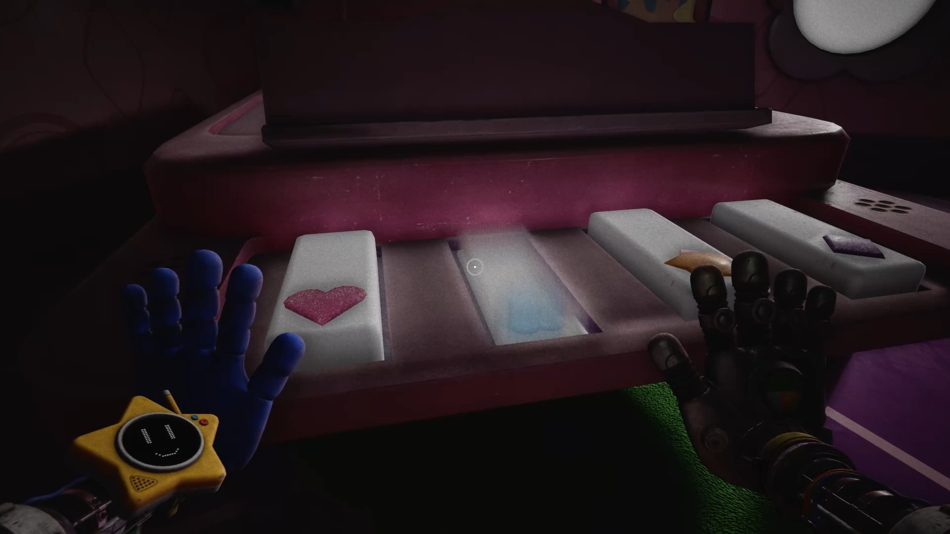 Après le premier souvenir, récupérez une deuxième disquette au pied de l’ordinateur numéro un, puis insérez-la dans le second ordinateur afin d’activer la seconde mémoire. Ici, rejoignez simplement le logo de Huggy lorsque la musique s’arrête, puis jetez les peluches dans le coffre à jouets pour réussir l’épreuve.