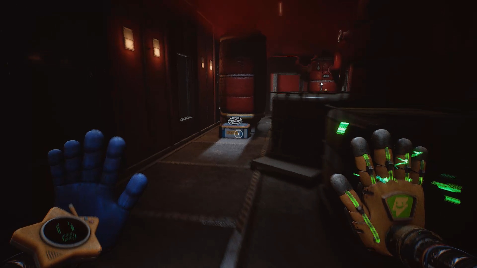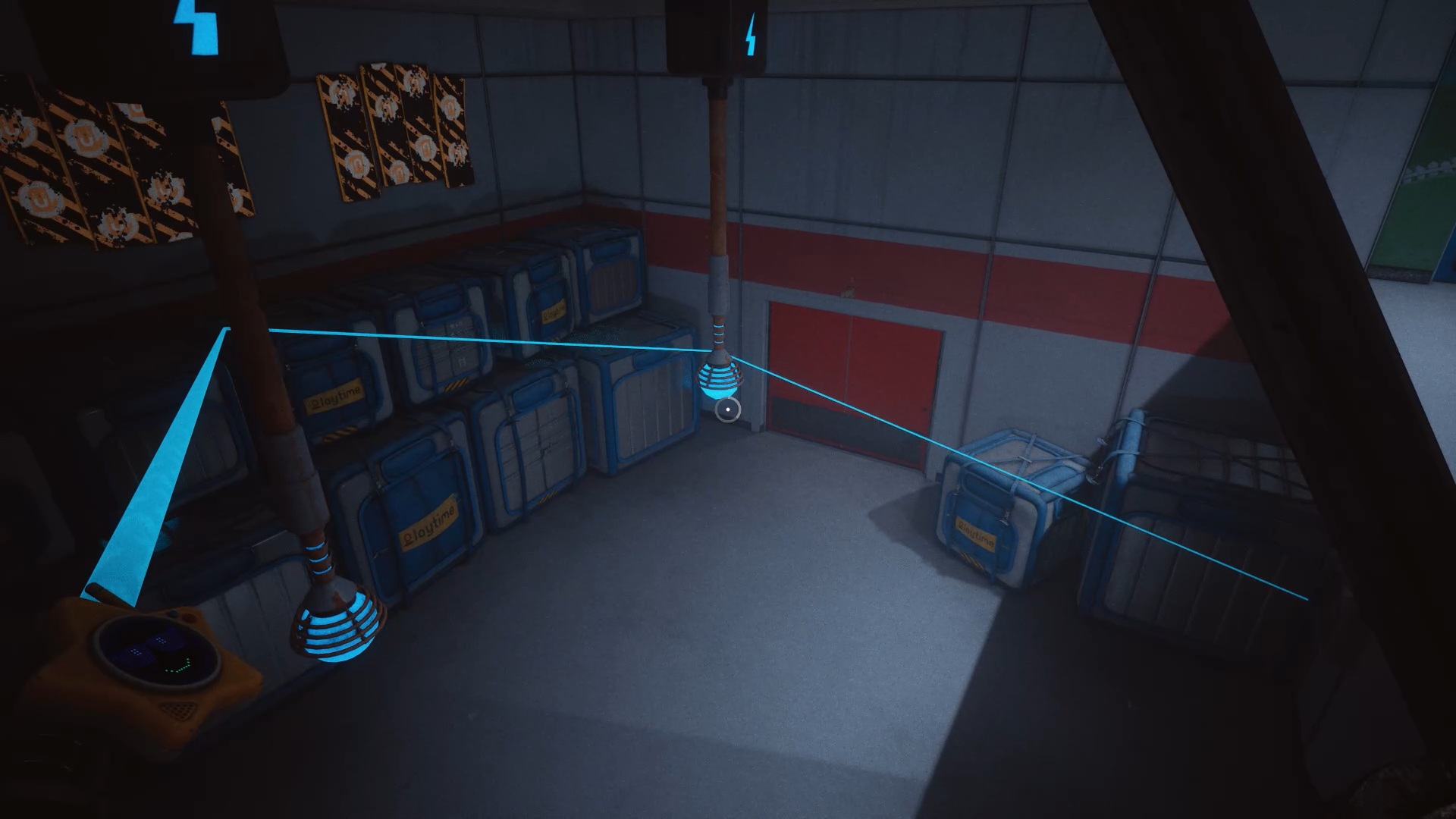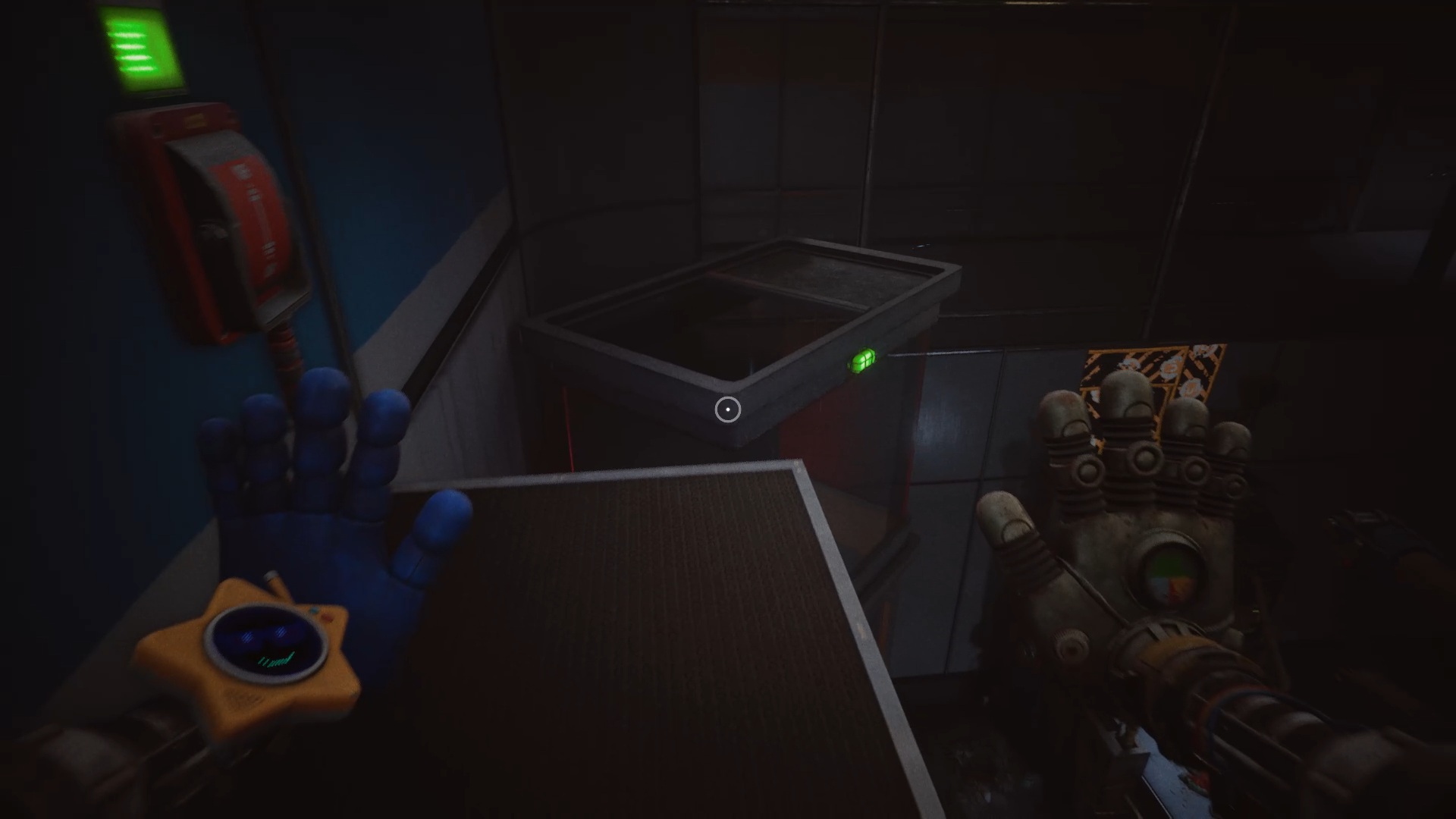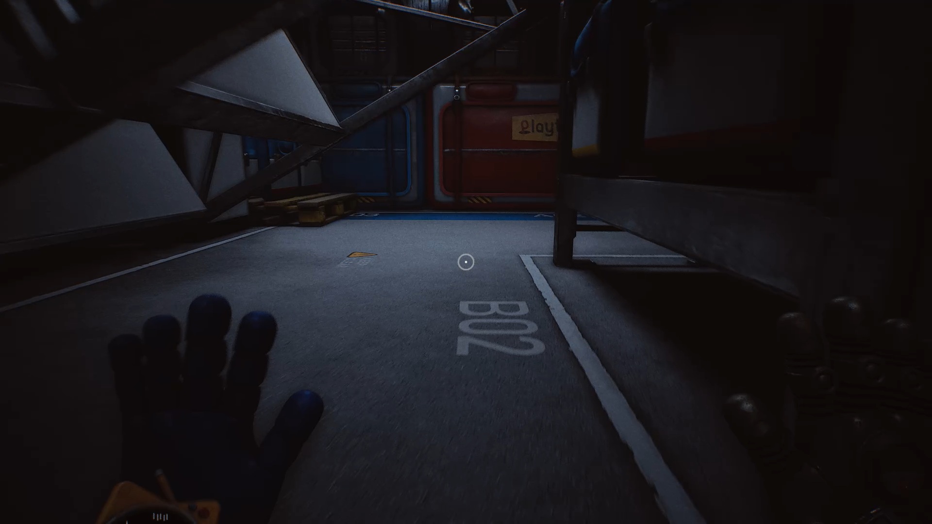 Au début du chapitre 5 de Poppy Playtime, suivez les indications à l’écran pour échapper à Huggy Wuggy. Une fois arrivé dans le hangar, utilisez les mains rouge et bleue pour déplacer les caisses à proximité et vous créer un passage afin de prendre de la hauteur.