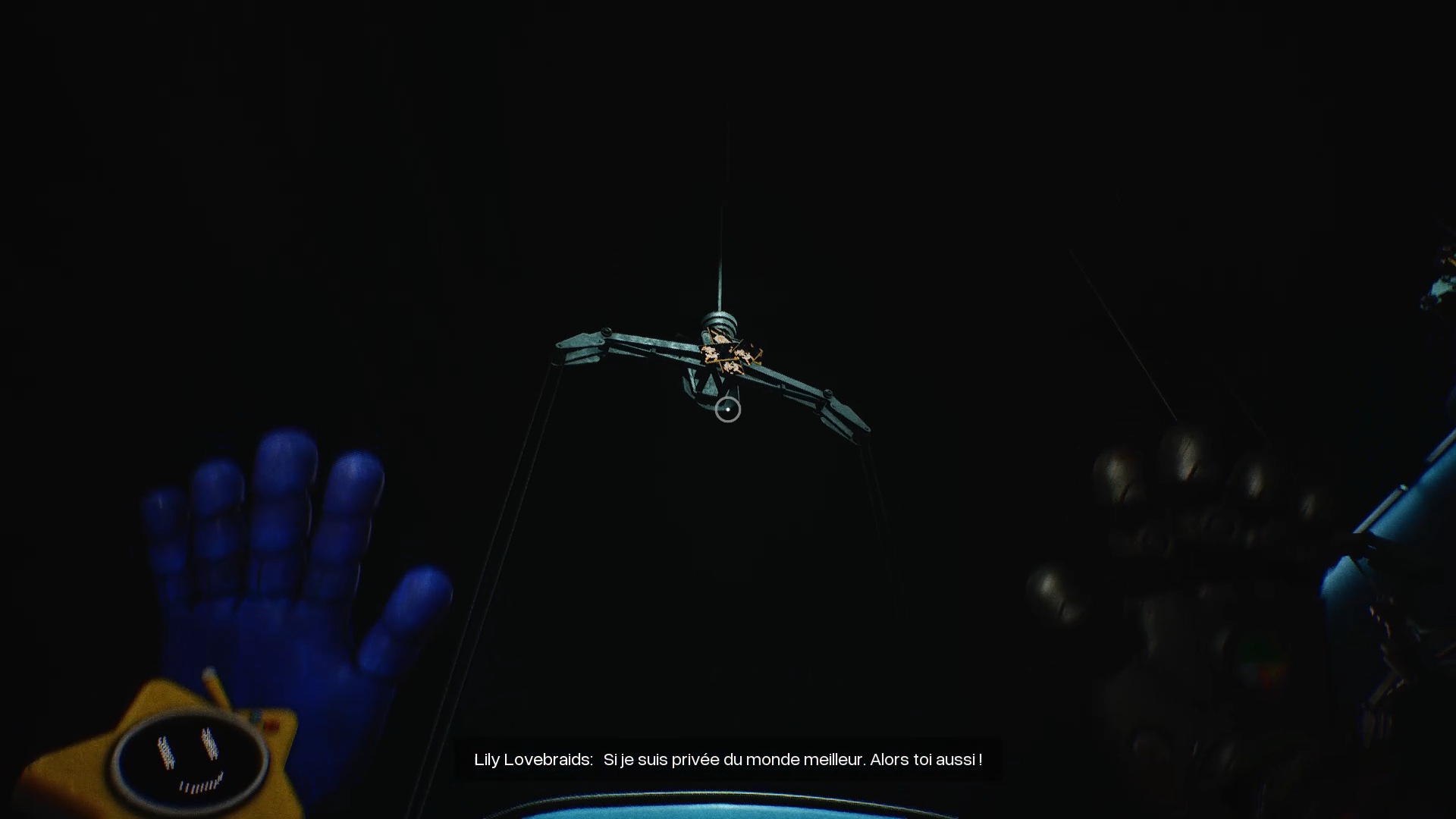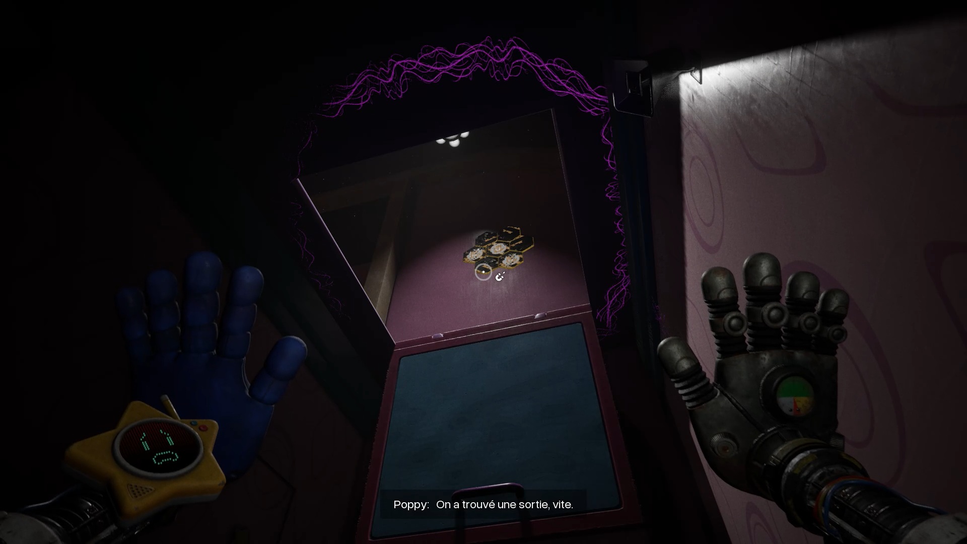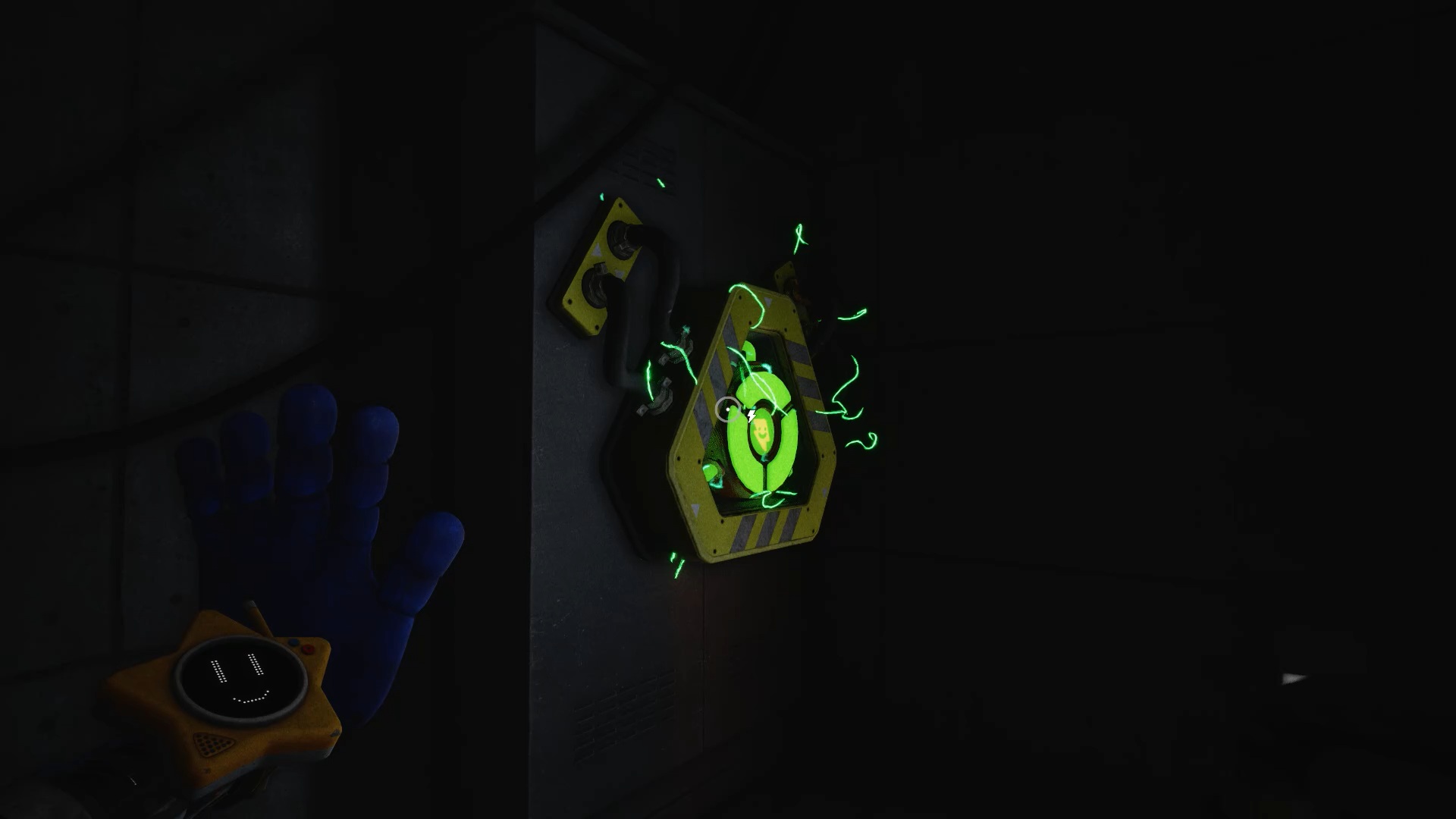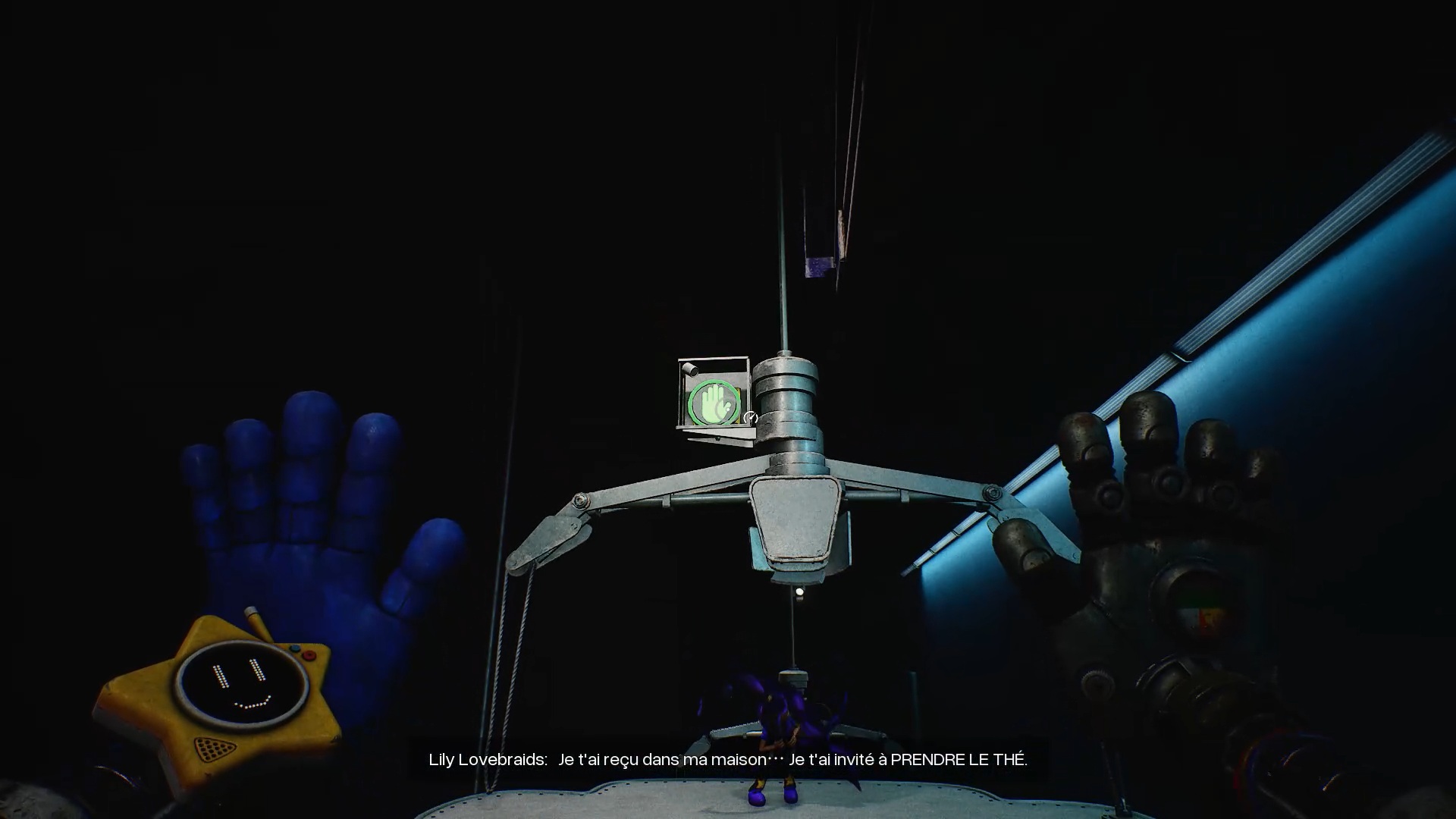 Enfoncez-vous ensuite dans les tunnels et utilisez de nouveau vos mains pour tourner les deux valves. Attention : Huggy revient à la charge en ouvrant une brèche. Engouffrez-vous dans celle-ci pour rejoindre un ascenseur. Esquivez les attaques du monstre et utilisez votre main sur le scanner pour déclencher une cinématique.