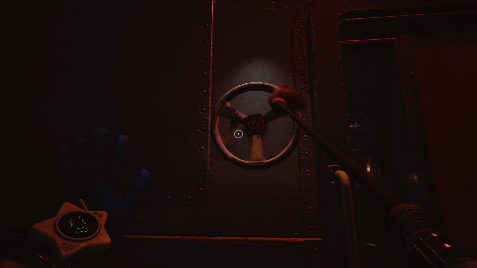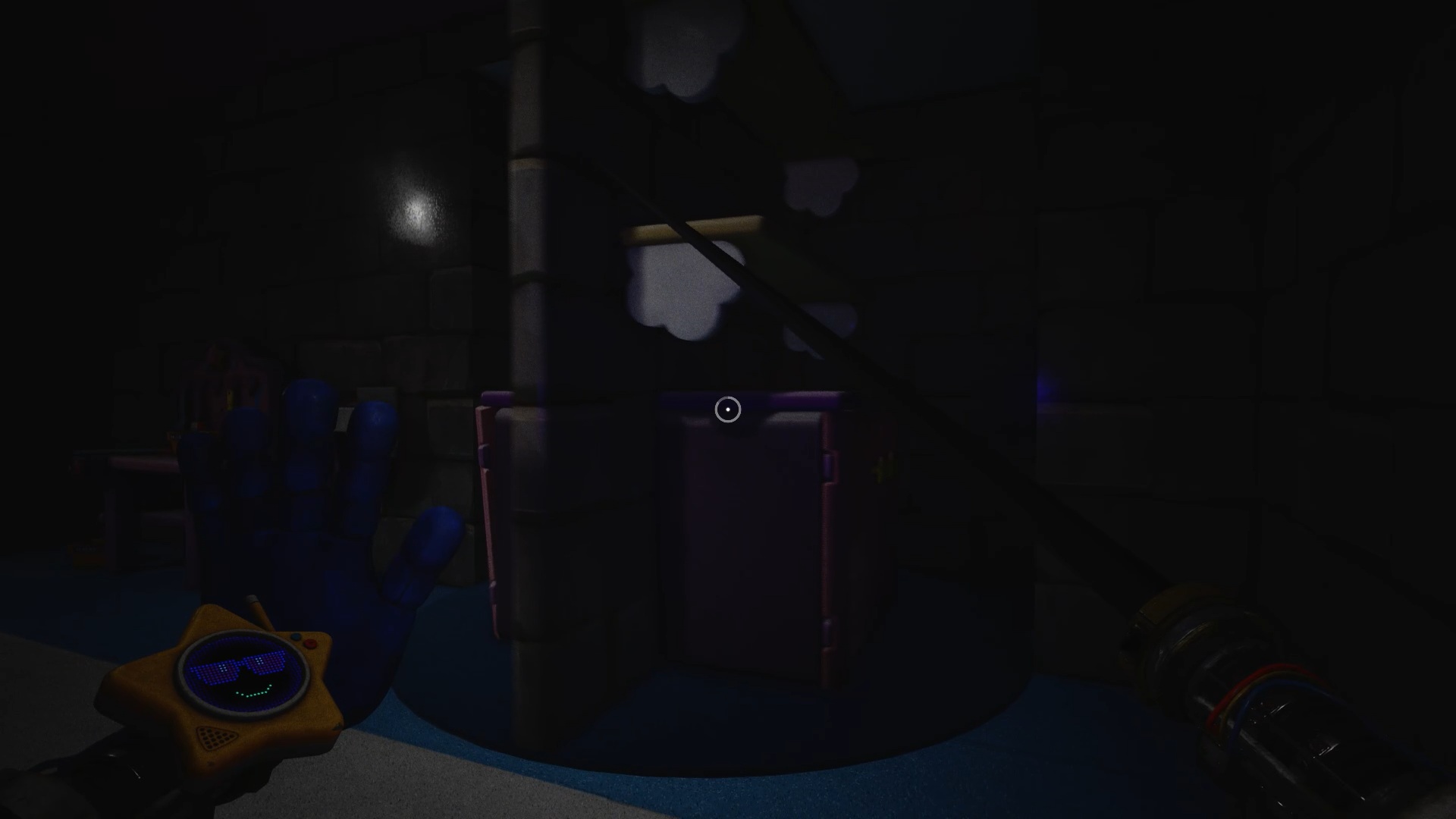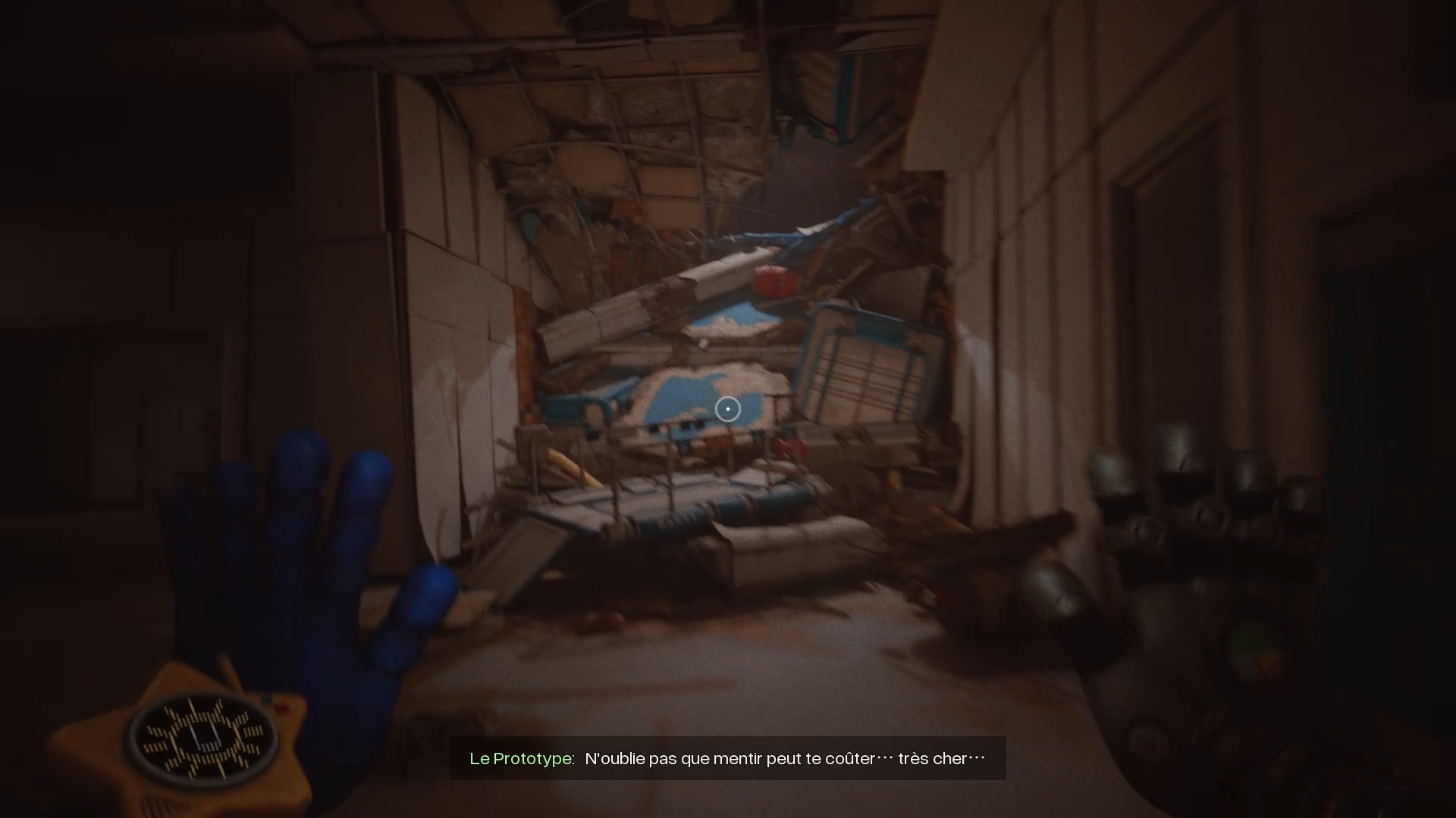 Enfoncez-vous ensuite dans les tunnels et utilisez de nouveau vos mains pour tourner les deux valves. Attention : Huggy revient à la charge en ouvrant une brèche. Engouffrez-vous dans celle-ci pour rejoindre un ascenseur. Esquivez les attaques du monstre et utilisez votre main sur le scanner pour déclencher une cinématique.
