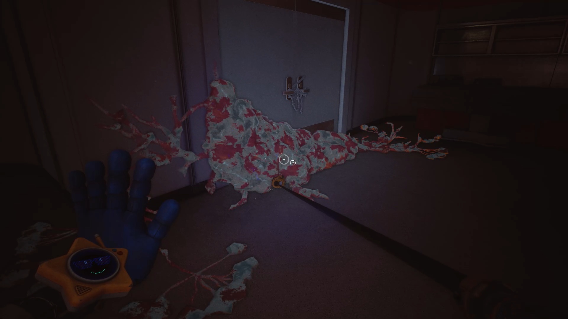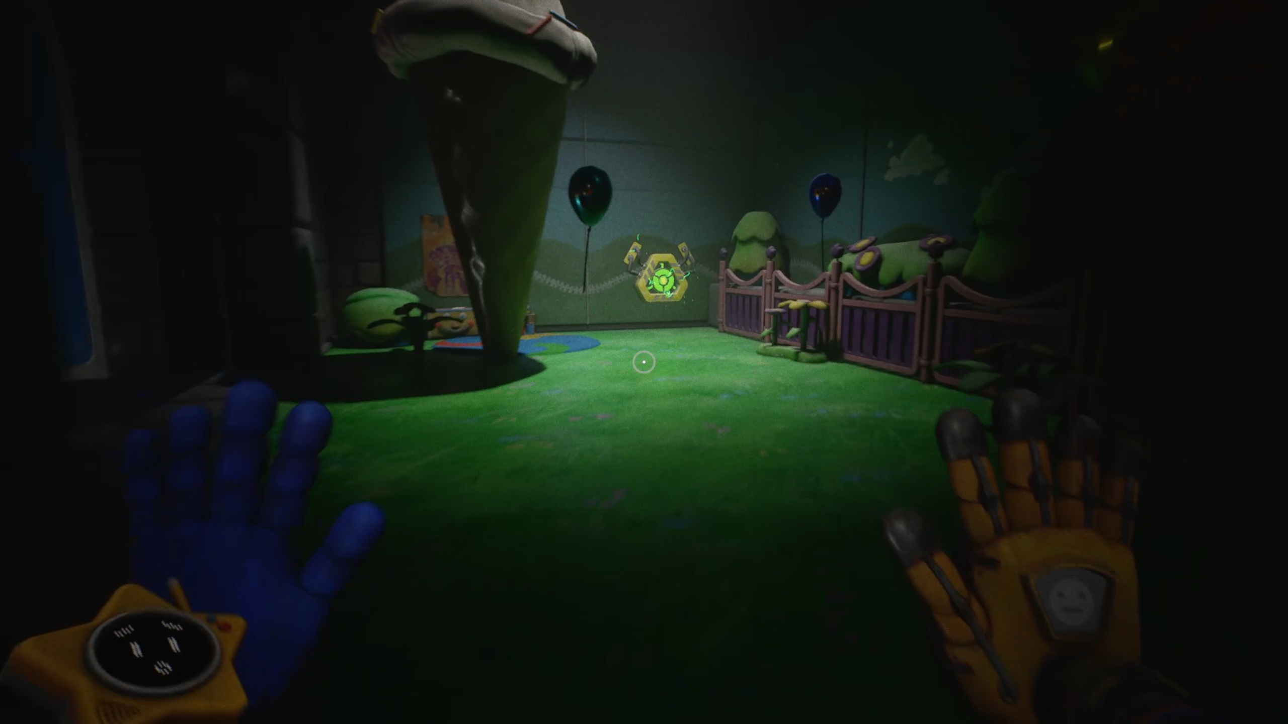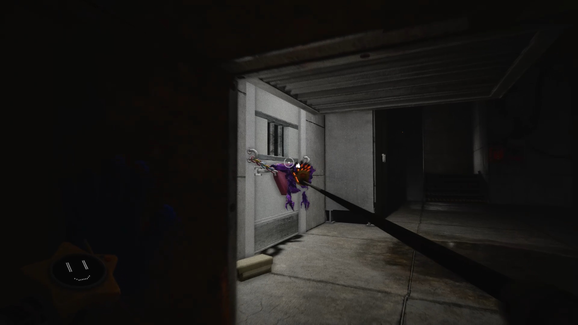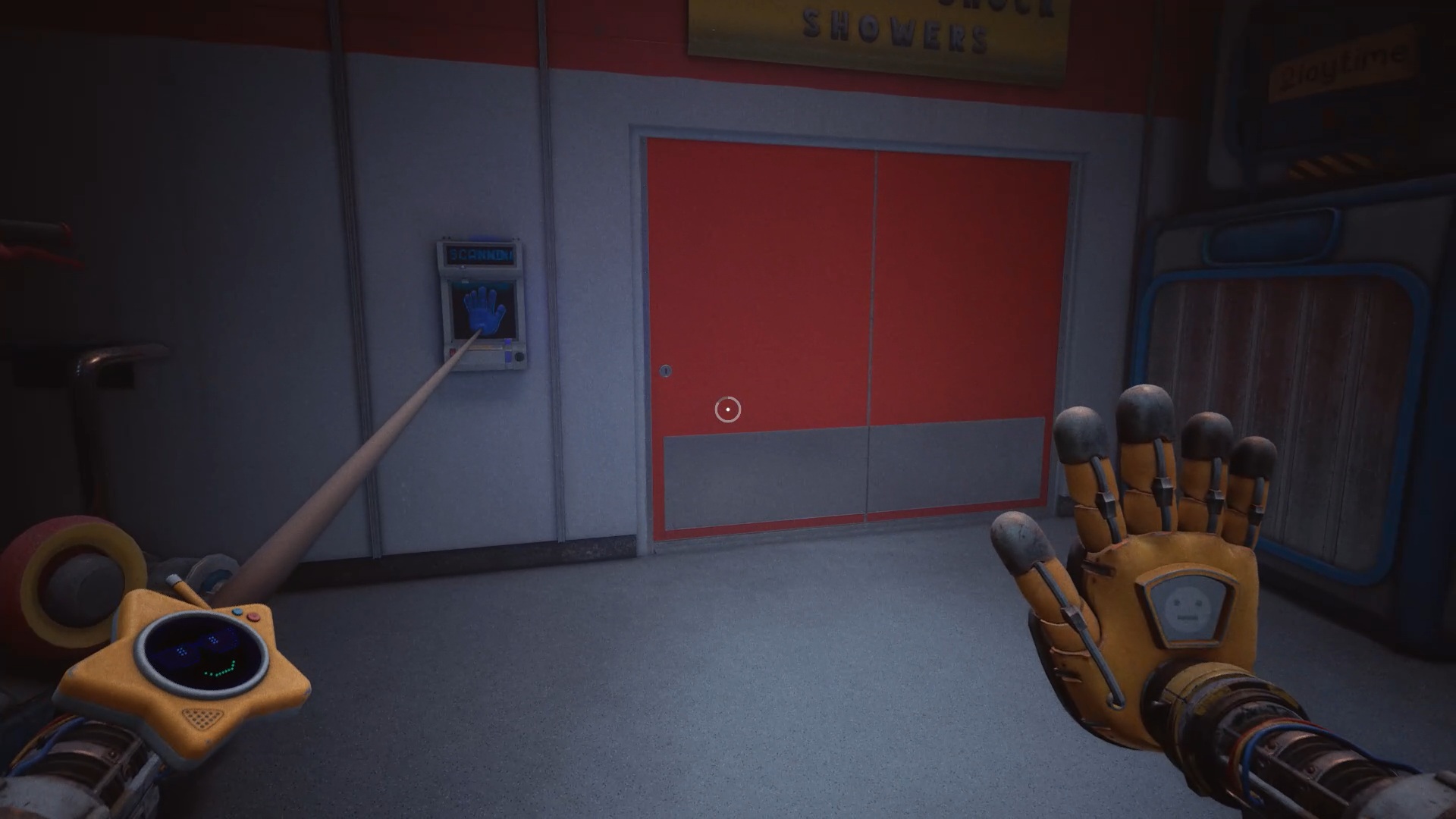 Enfoncez-vous ensuite dans les tunnels et utilisez de nouveau vos mains pour tourner les deux valves. Attention : Huggy revient à la charge en ouvrant une brèche. Engouffrez-vous dans celle-ci pour rejoindre un ascenseur. Esquivez les attaques du monstre et utilisez votre main sur le scanner pour déclencher une cinématique.
