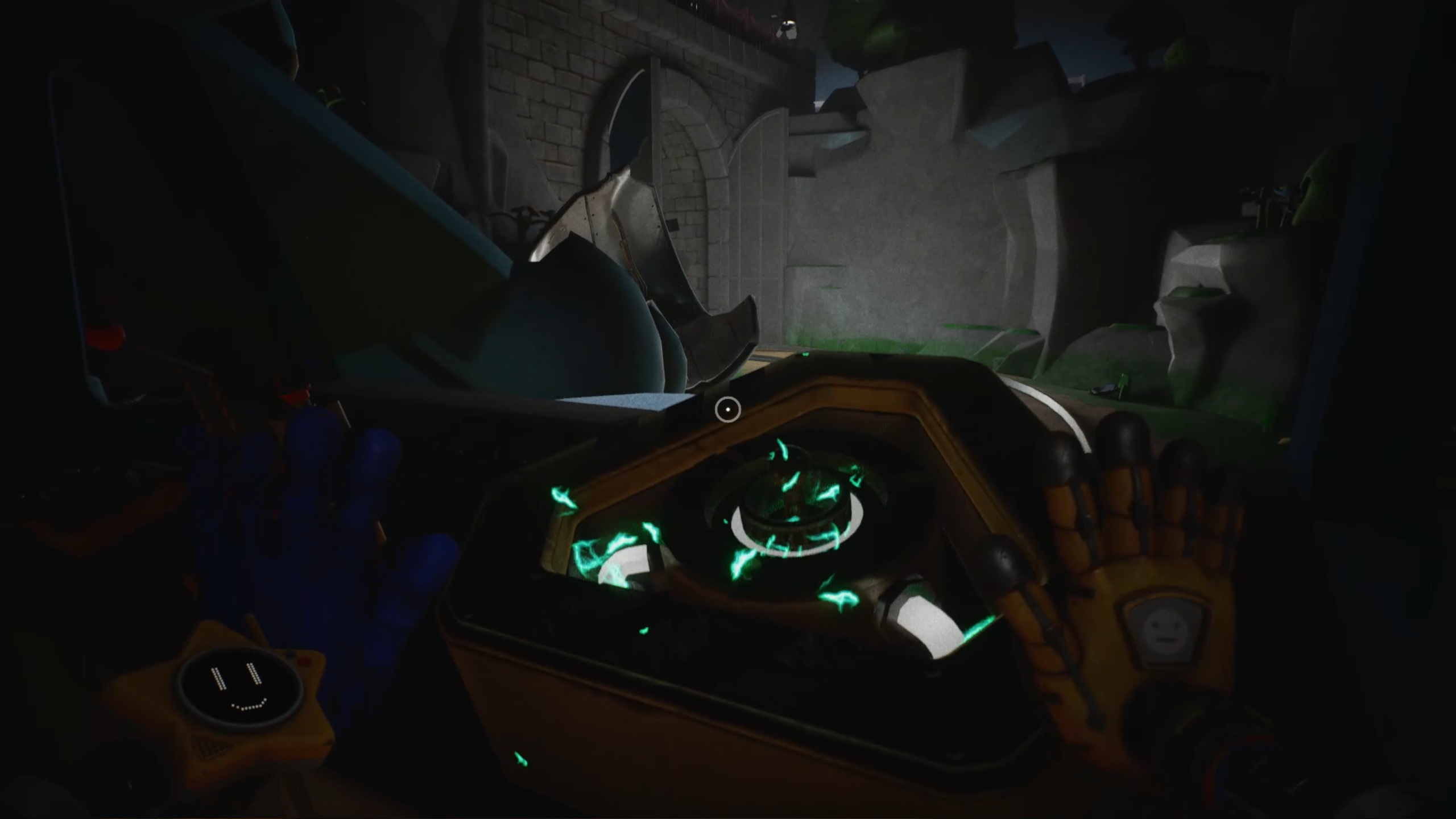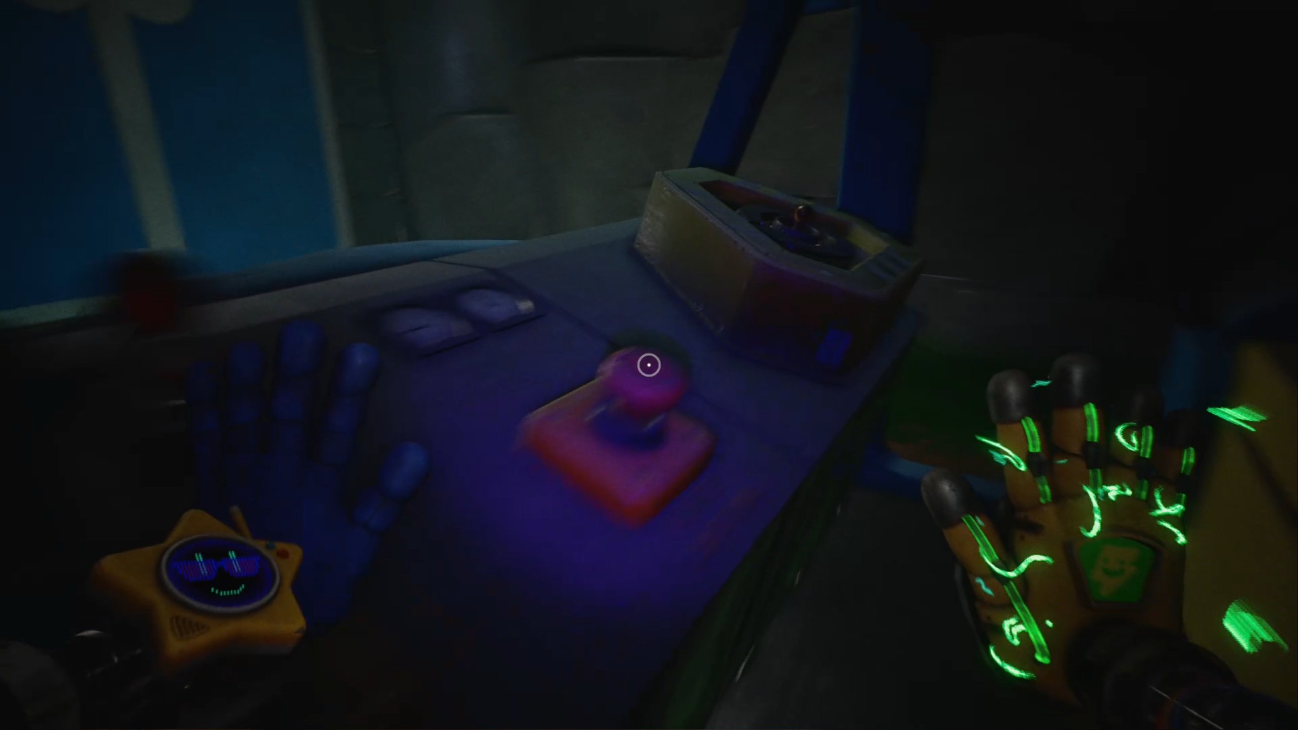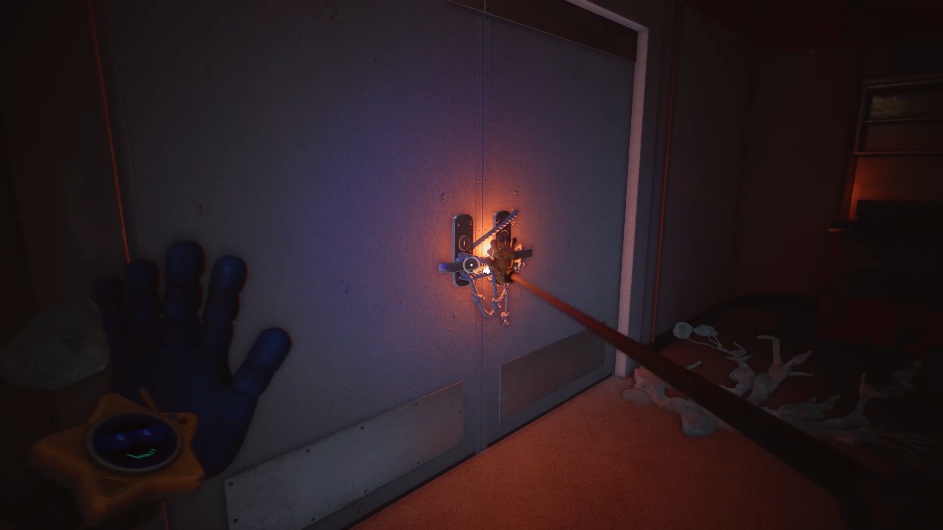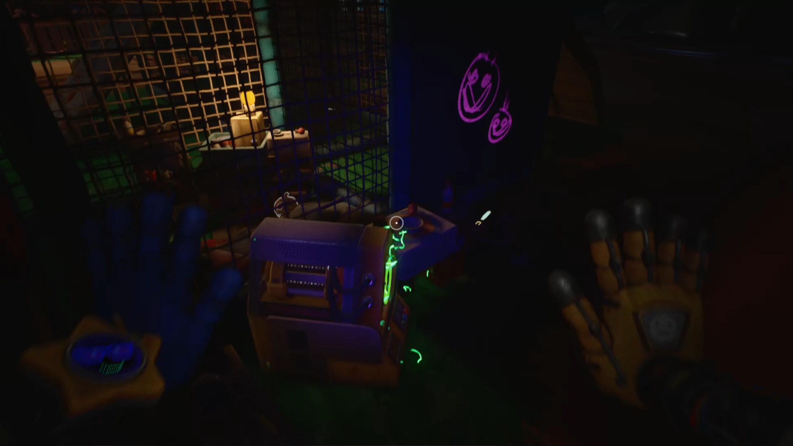 Pour rétablir le courant, franchissez deux nouvelles portes bleues afin d’accéder à un couloir. Dans celui-ci, entrez par la porte rouge pour trouver un générateur. Tirez-le à l’aide de vos mains rouge et bleue jusqu’à la porte jaune située dans le couloir. Déposez ensuite le générateur sur le socle à l’intérieur afin d’alimenter la zone.