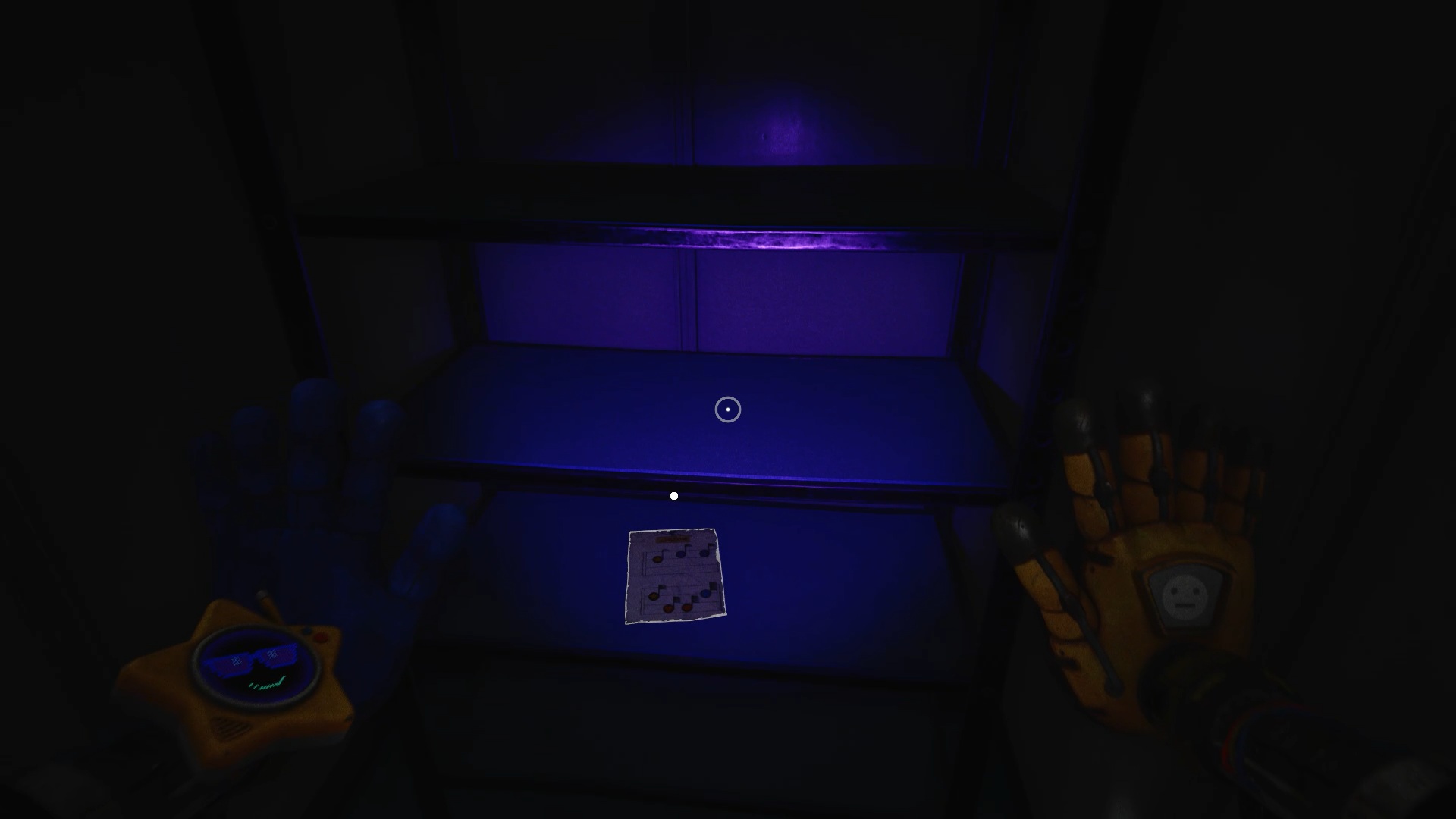 Montez ensuite à l’étage avec l’une des batteries, puis tirez sur l’étoile afin de révéler un socle. Déposez la batterie à l’intérieur pour alimenter, dans la pièce située derrière, un levier relié à un scanner. Passez le scanner avec votre main, puis récupérez sur l’étagère une note de musique.