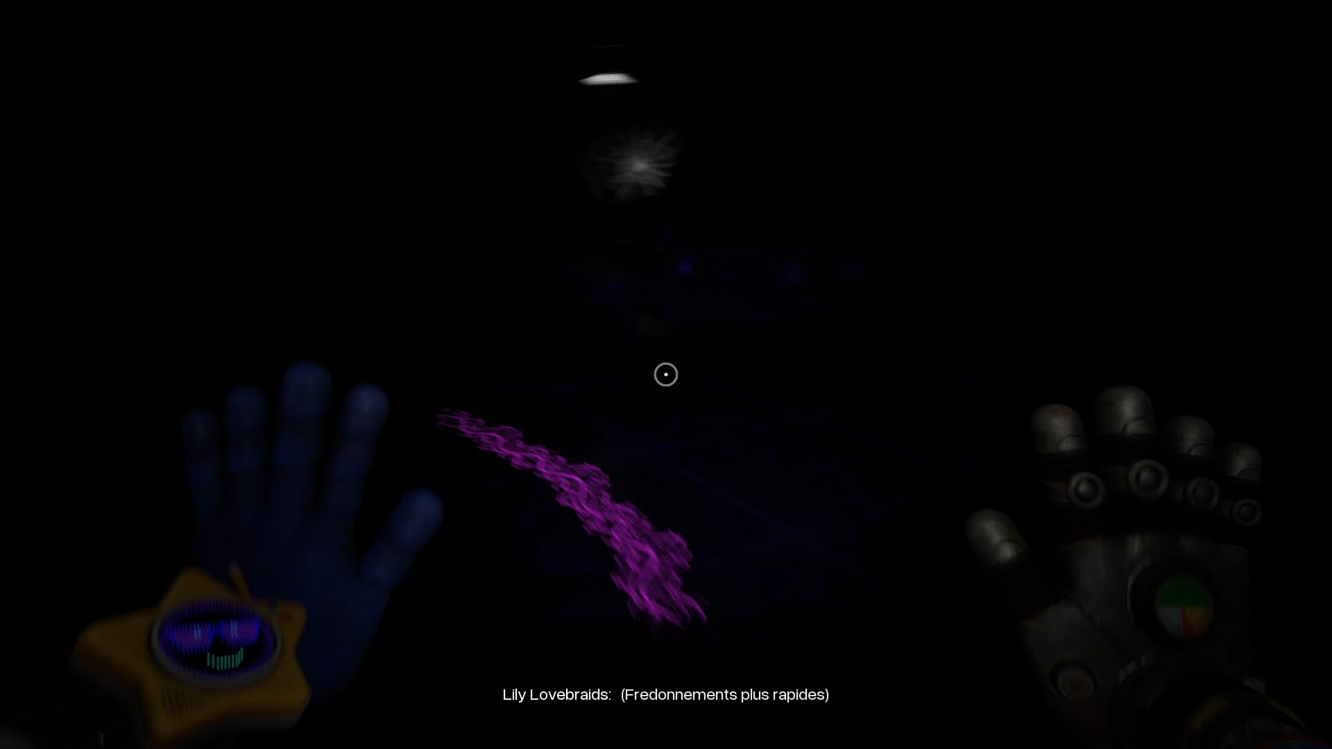 Après avoir réussi à la libérer, les lumières s’éteignent. Utilisez la lampe de Glowby pour retrouver votre chemin jusqu’au salon. Lily vous provoque alors en duel. Vous devez suivre ses règles pour espérer vous échapper. Elles sont simples : avancez en permanence en suivant la ligne tracée au sol par Lily. Gardez toujours les yeux sur cette ligne, même lorsqu’elle passe en hauteur, afin de ne pas tricher. Lily vous poursuit par derrière, alors ne ralentissez pas. Au bout du parcours, vous faites face à une vitre : utilisez votre gant à pression pour la briser et passer au travers. Arrivé dans une impasse, regardez en hauteur pour repérer une trappe. Utilisez votre gant à anneau pour vous hisser et atteindre le niveau supérieur.
