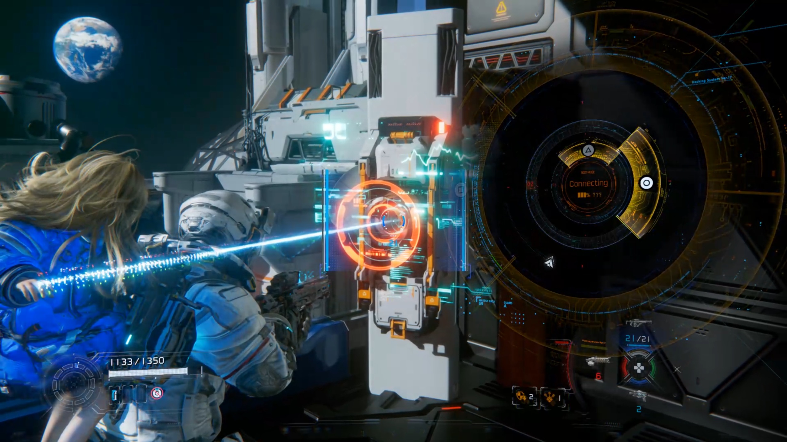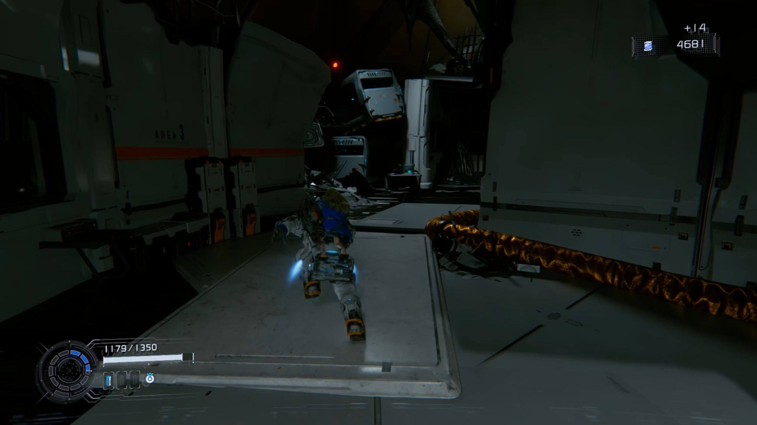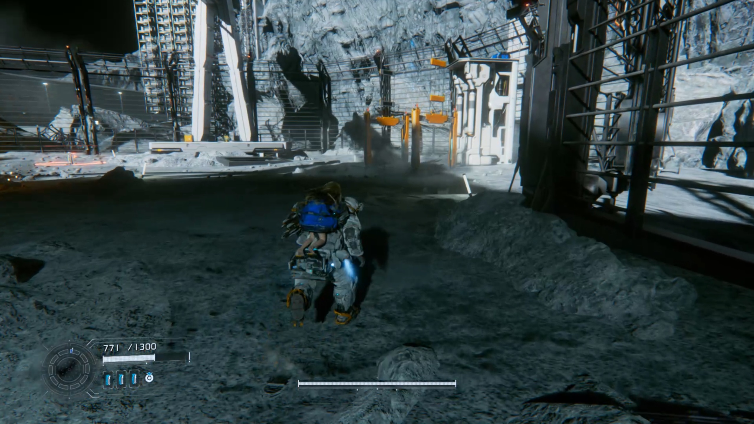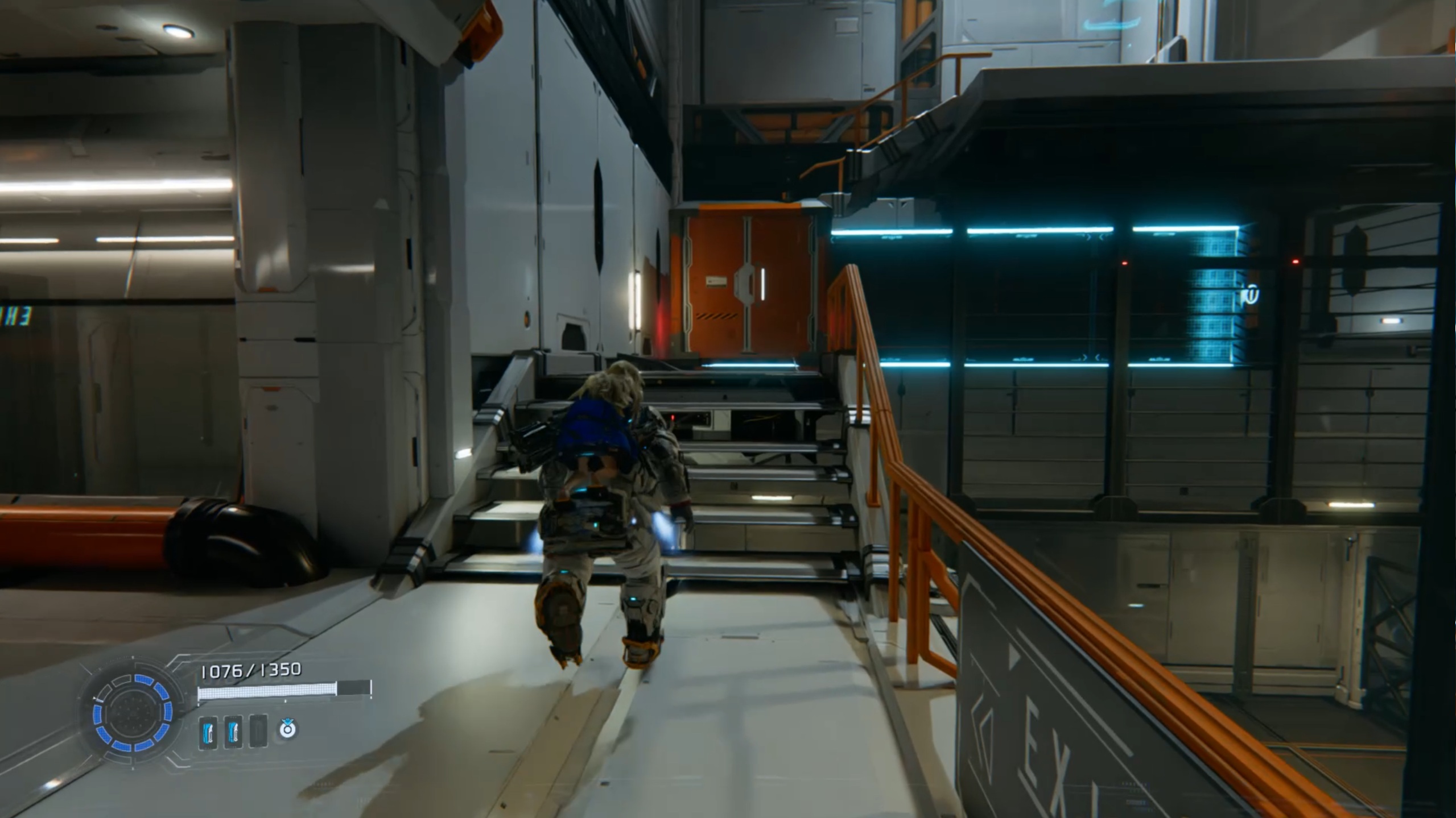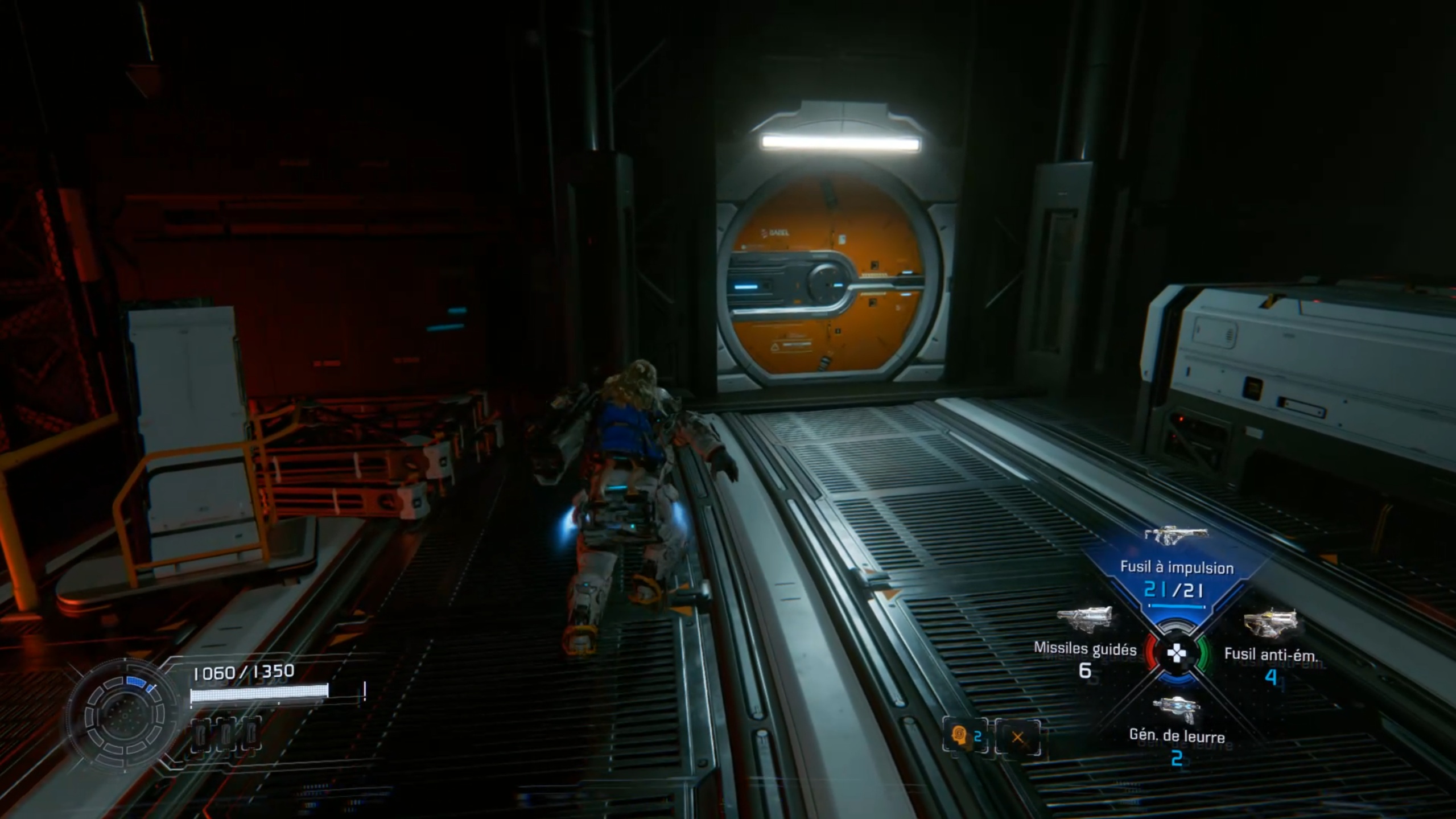 À l’extérieur, utilisez les plateformes pour éviter de toucher le sol. Vous pouvez utiliser les mines à proximité pour dévier le robot de sa trajectoire. Rejoignez le sas le plus proche afin d’entrer dans un bâtiment. À l’intérieur, un combat se déclenche : éliminez les ennemis, puis montez sur le balcon à l’étage pour activer un interrupteur et faire descendre un conteneur à l’extérieur.