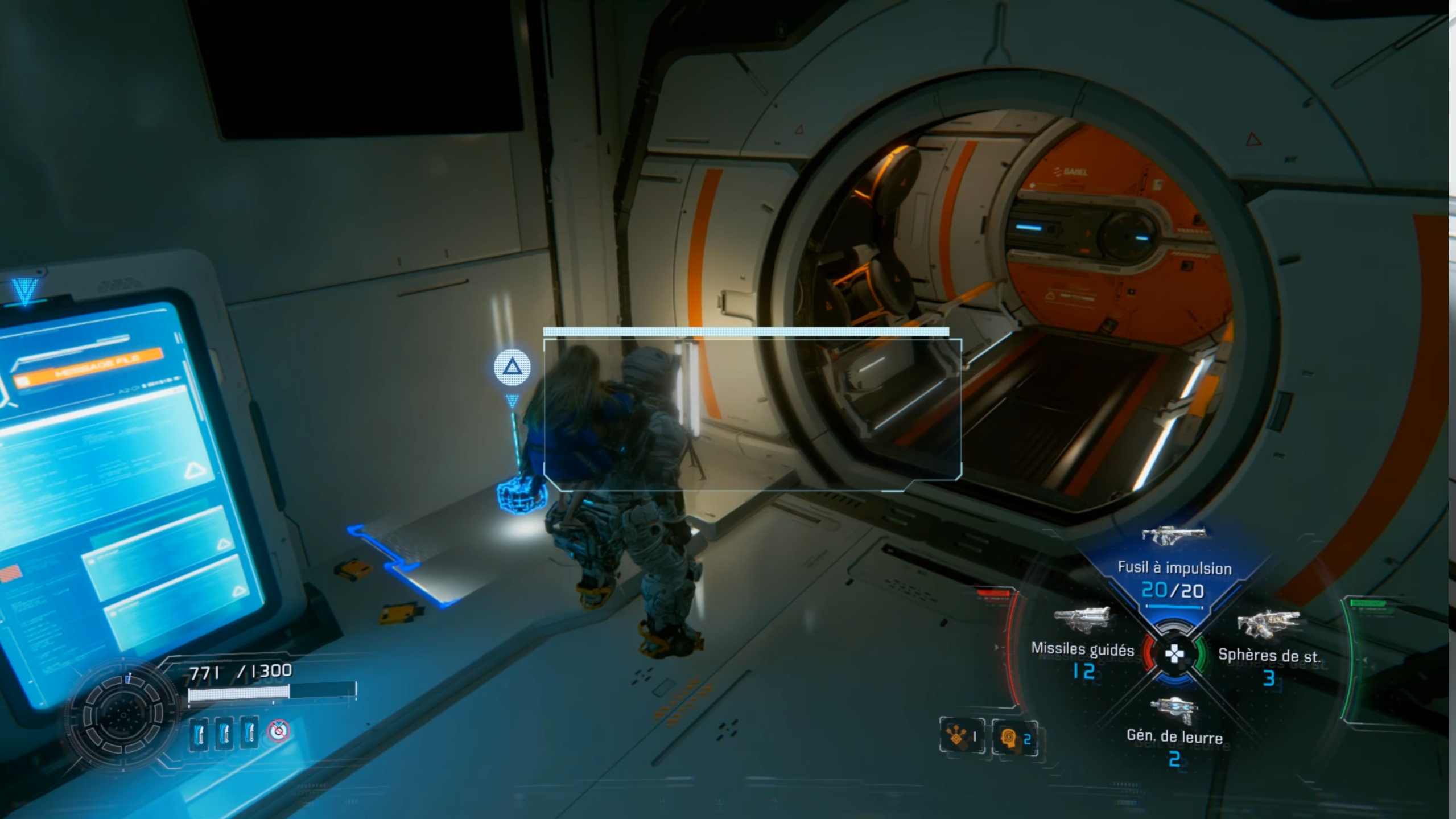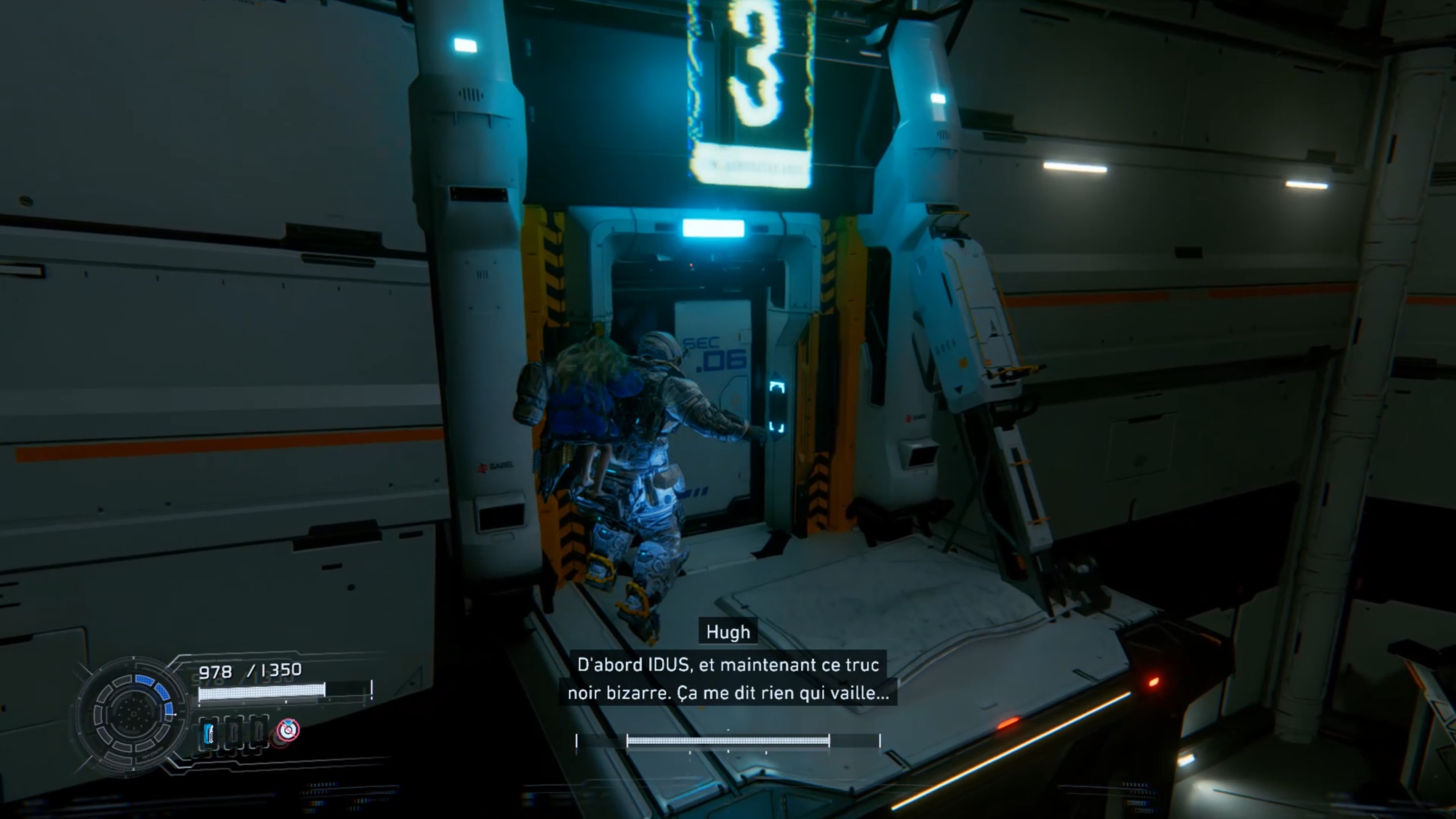 Après avoir vaincu les ennemis dans la foreuse, rejoignez le sas pour entrer dans un nouveau bâtiment. À l’intérieur, remportez le combat pour atteindre les hauteurs et découvrir un nouveau type d’ennemi. Utilisez la capacité de hack pour le rendre vulnérable et le vaincre. Une fois fait, dirigez-vous vers la porte n°3, au fond de la pièce.