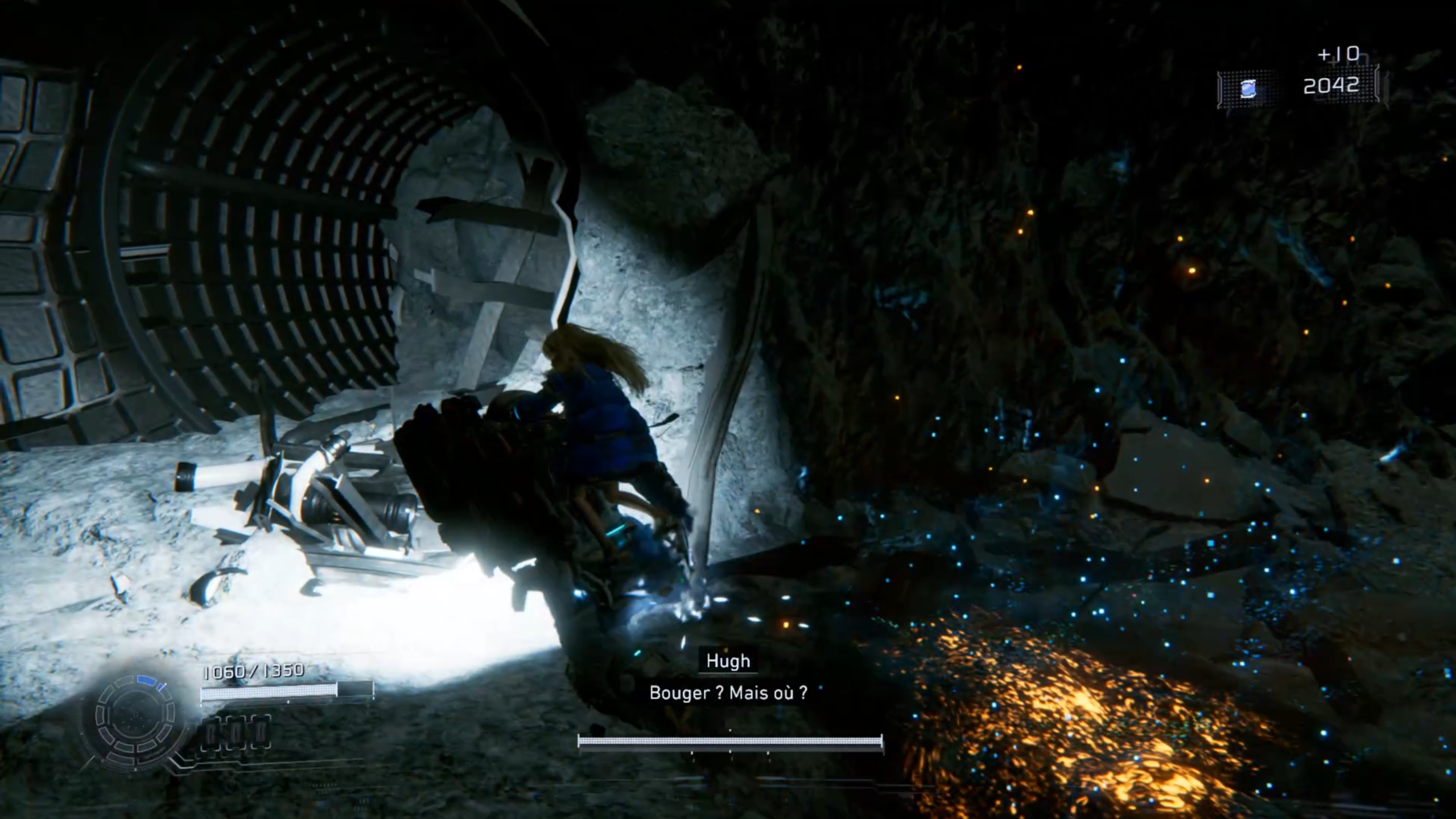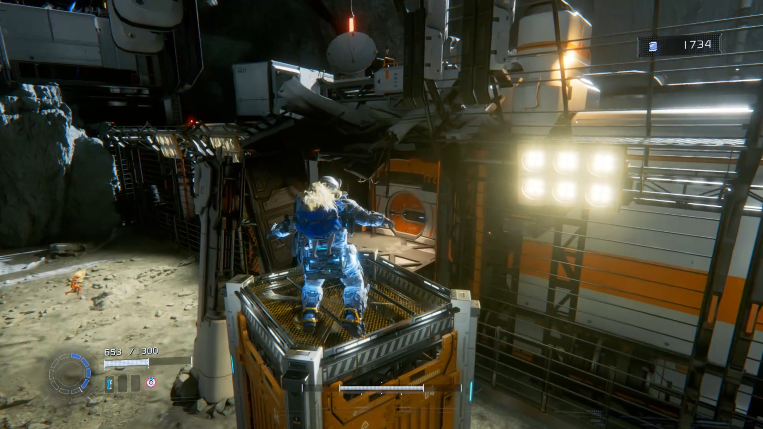 Arrivé à la mine Lunum, poursuivez votre chemin pour atteindre un ascenseur. Une fois à l’extérieur, utilisez les plateformes pour rejoindre l’autre côté. Un combat se déclenche : éliminez les menaces, puis activez un interrupteur sur un pylône afin de faire descendre une nouvelle plateforme. Utilisez cette plateforme pour atteindre celle en face et poursuivre votre progression.