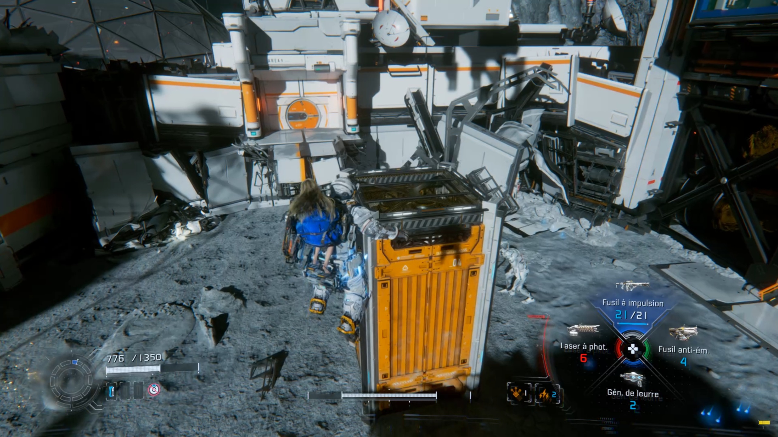 Passez le sas pour rejoindre de nouveau l’extérieur. Une fois dehors, dirigez-vous vers la structure en périphérie avec des cristaux pour déclencher un combat. Réussissez l’épreuve afin d’activer un interrupteur et faire descendre un conteneur. Utilisez-le pour rejoindre la tour centrale.