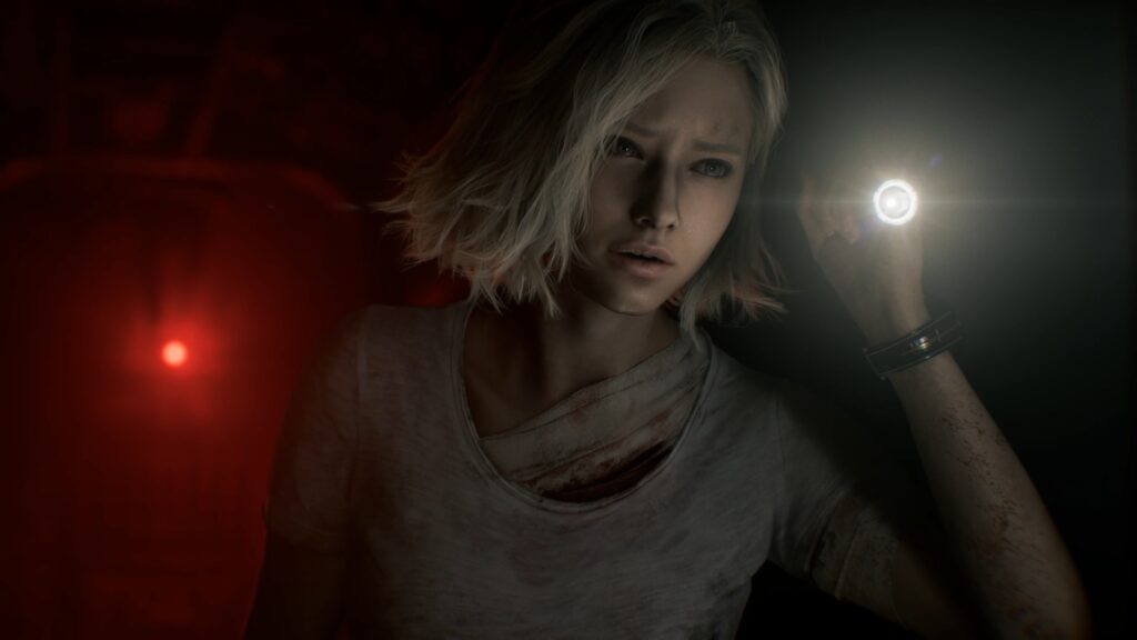 Allez au fond du couloir pour déclencher une cinématique, puis interagissez avec le socle d’un connecteur au fond afin d’en récupérer un. Attention : “La Fille” débarque. Utilisez les connecteurs à bon escient pour vous réfugier dans la lumière et progresser. Attendez que “La Fille” fasse demi-tour, puis examinez l’opposé du couloir. Utilisez votre connecteur pour déverrouiller la porte de l’atelier. À l’intérieur, examinez les documents pour découvrir que vous avez besoin d’un outil afin d’ouvrir la grille du conduit d’aération.