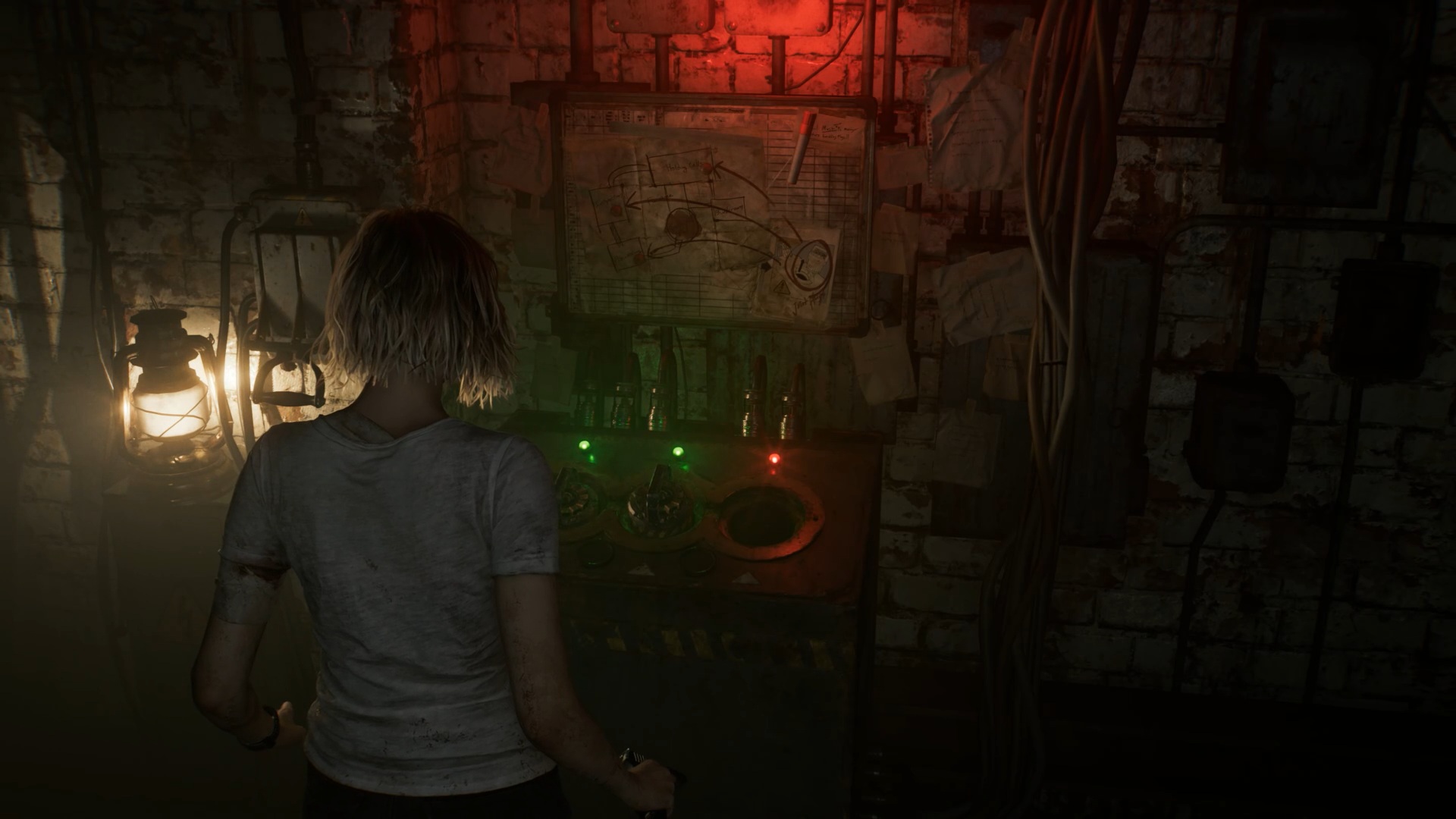Allez au fond du couloir pour déclencher une cinématique, puis interagissez avec le socle d’un connecteur au fond afin d’en récupérer un. Attention : “La Fille” débarque. Utilisez les connecteurs à bon escient pour vous réfugier dans la lumière et progresser. Attendez que “La Fille” fasse demi-tour, puis examinez l’opposé du couloir. Utilisez votre connecteur pour déverrouiller la porte de l’atelier. À l’intérieur, examinez les documents pour découvrir que vous avez besoin d’un outil afin d’ouvrir la grille du conduit d’aération.