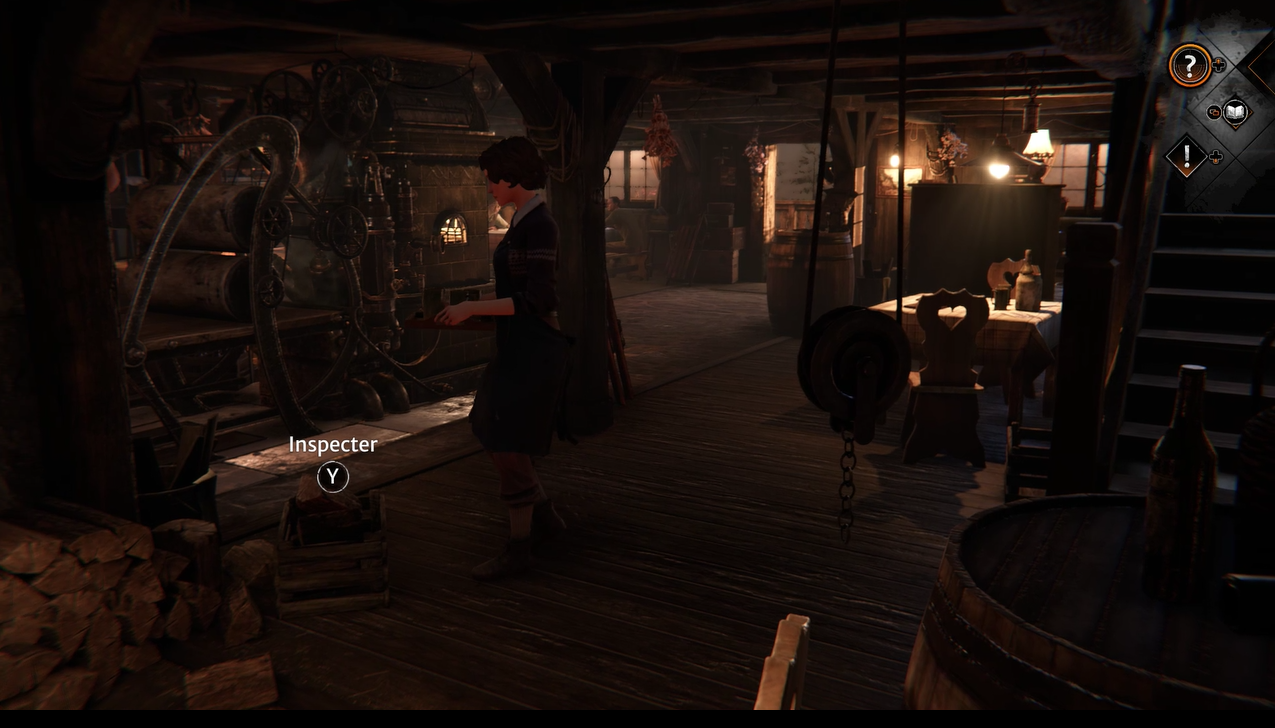 Dans le refuge du Silberspiegel, vous devez réparer le poêle pour chauffer la pièce. Inspectez le panneau de commande du poêle pour découvrir deux problèmes : il faut ajouter plus de bois et il y a un problème au niveau de la prise d’air.