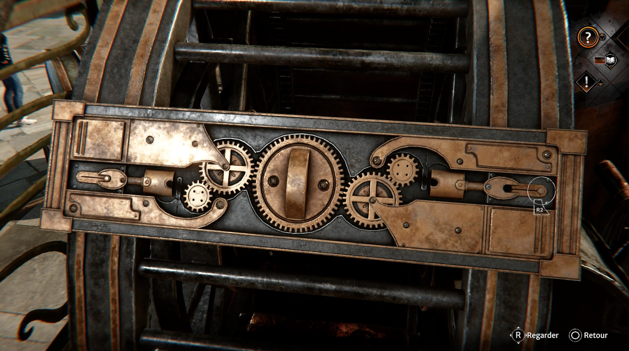 Le dernier mécanisme se trouve à droite du piano lorsqu’il se trouve face à vous. Interagissez avec la manivelle pour forcer la serrure. Pour activer le mécanisme, vous devez placer la pièce mécanique trouvée dans le beffroi dans le haut du mécanisme puis activez-le avec le bouton vert.