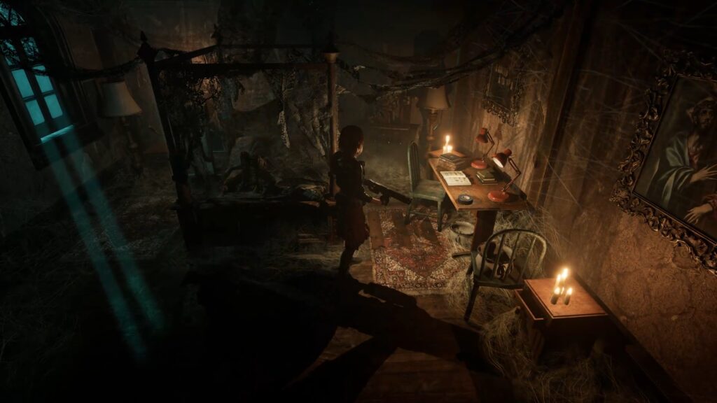 De l’autre côté du miroir, enfoncez-vous dans l’outre-monde pour atteindre la crypte. Ici, éteignez toutes les lumières en interagissant avec elles, puis placez-vous face à la porte. Lorsque vous êtes prêt, éteignez votre lampe pour laisser les ténèbres envahir la pièce et ainsi ouvrir la porte.