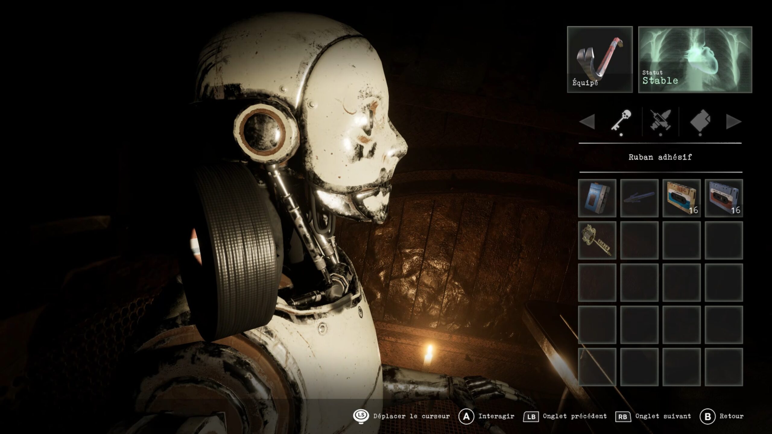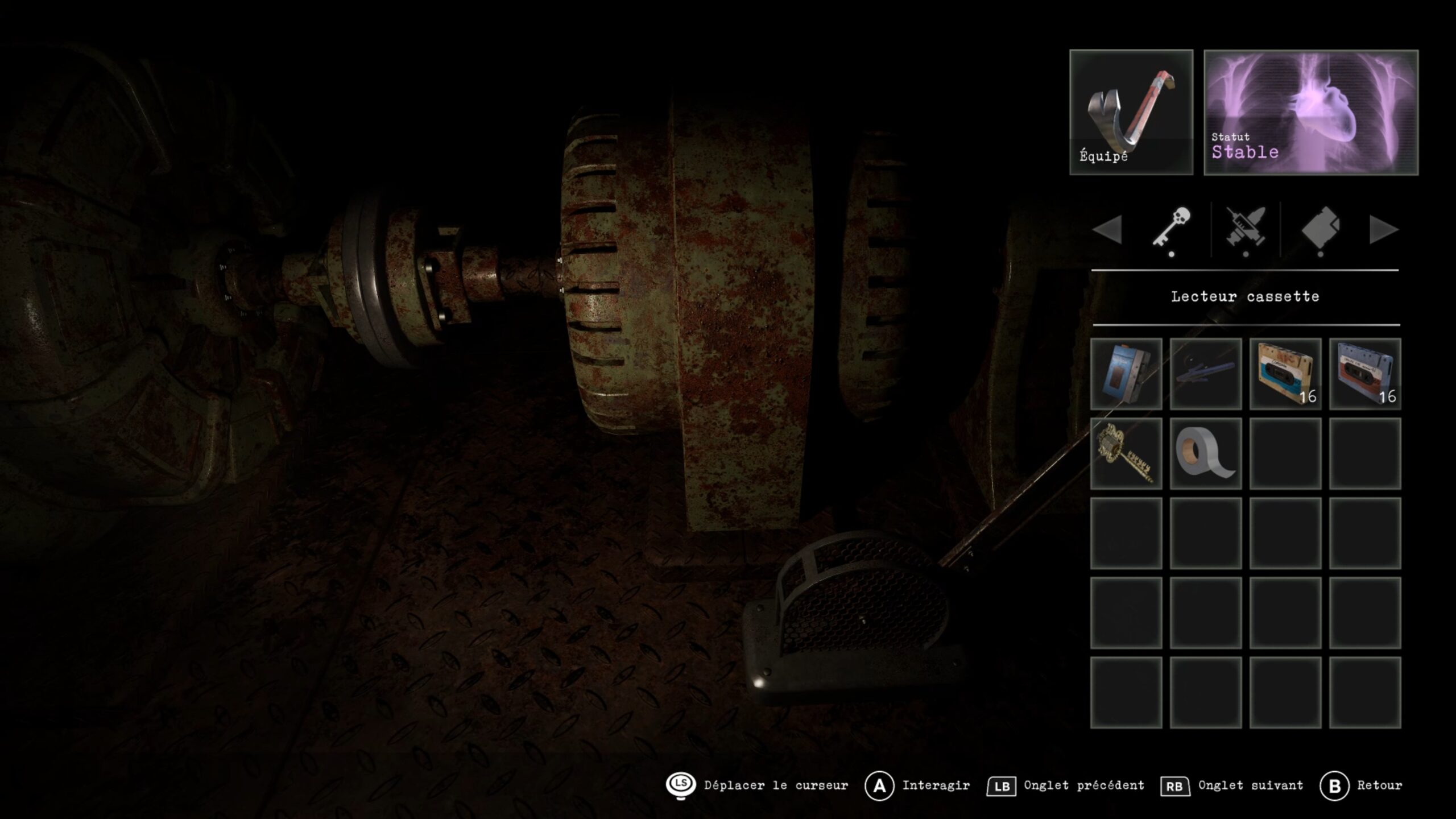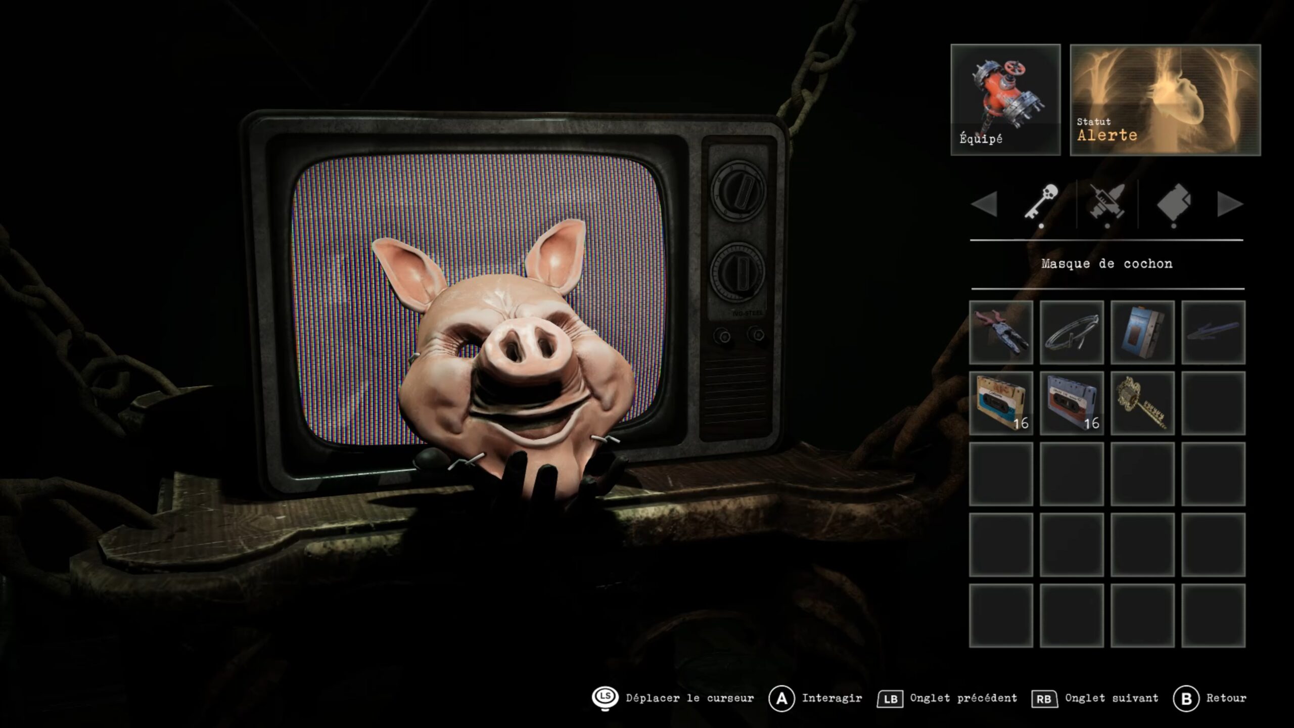 Après avoir vaincu Tête de Cochon, descendez dans le sous-sol de l’école. Si vous le souhaitez, utilisez la clé à combinaison obtenue précédemment pour ouvrir le casier verrouillé et récupérer à l’intérieur une amélioration du canon à main, rendant votre arme bien plus puissante. Une fois cela fait, approchez-vous du téléviseur et donnez le masque de cochon à la main qui en sort. Cette action permet de libérer la sortie et de mettre fin à la séquence de l’école, marquant la fin de ce chapitre.