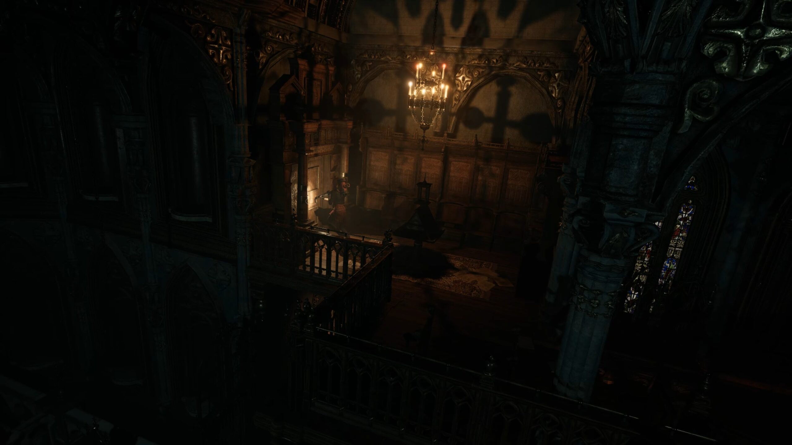 Utilisez l’ascenseur pour monter à l’étage supérieur, puis passez la porte au fond afin de rejoindre la sacristie. Traversez ensuite le bureau pour atteindre le cœur de l’église.
