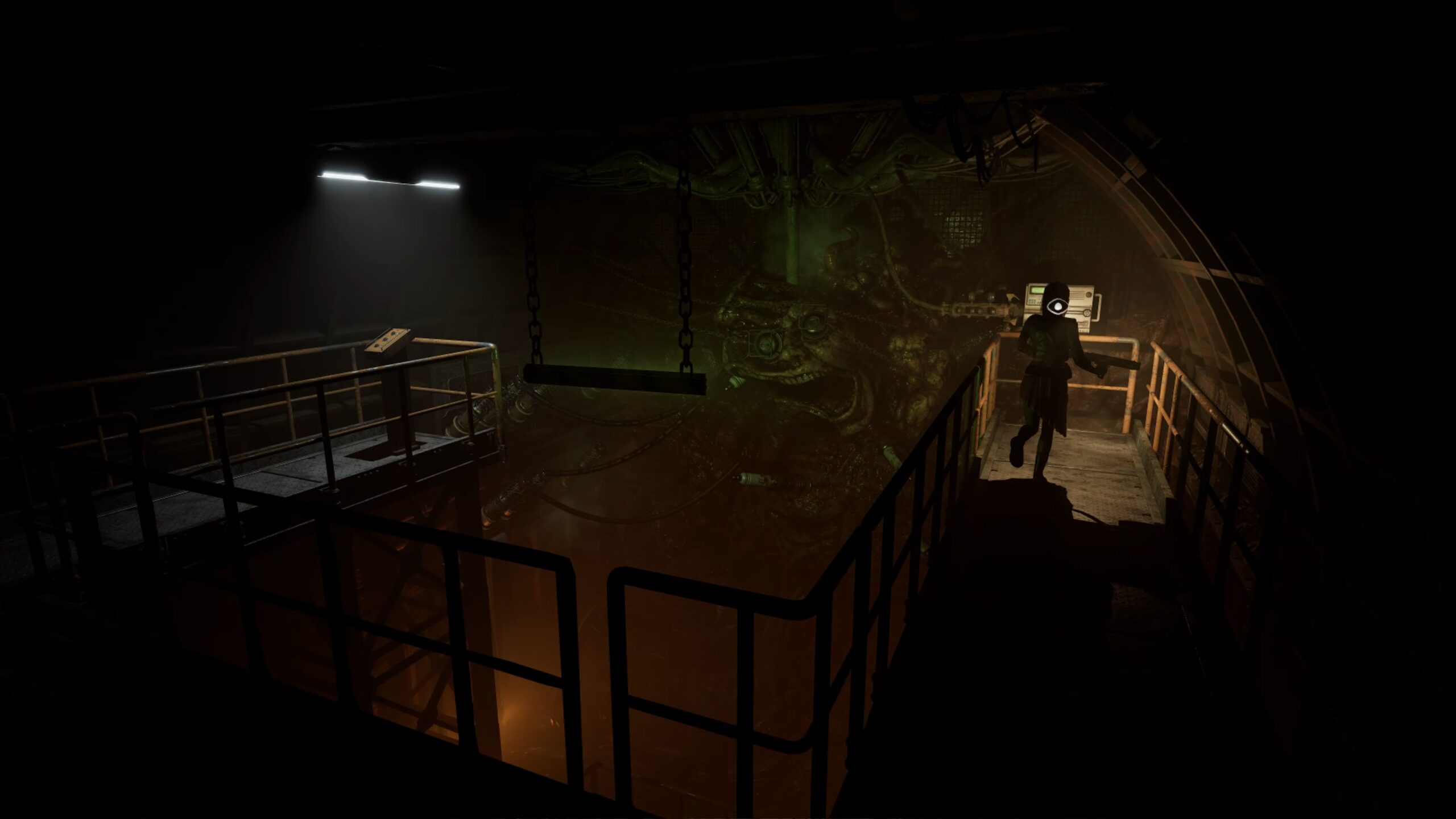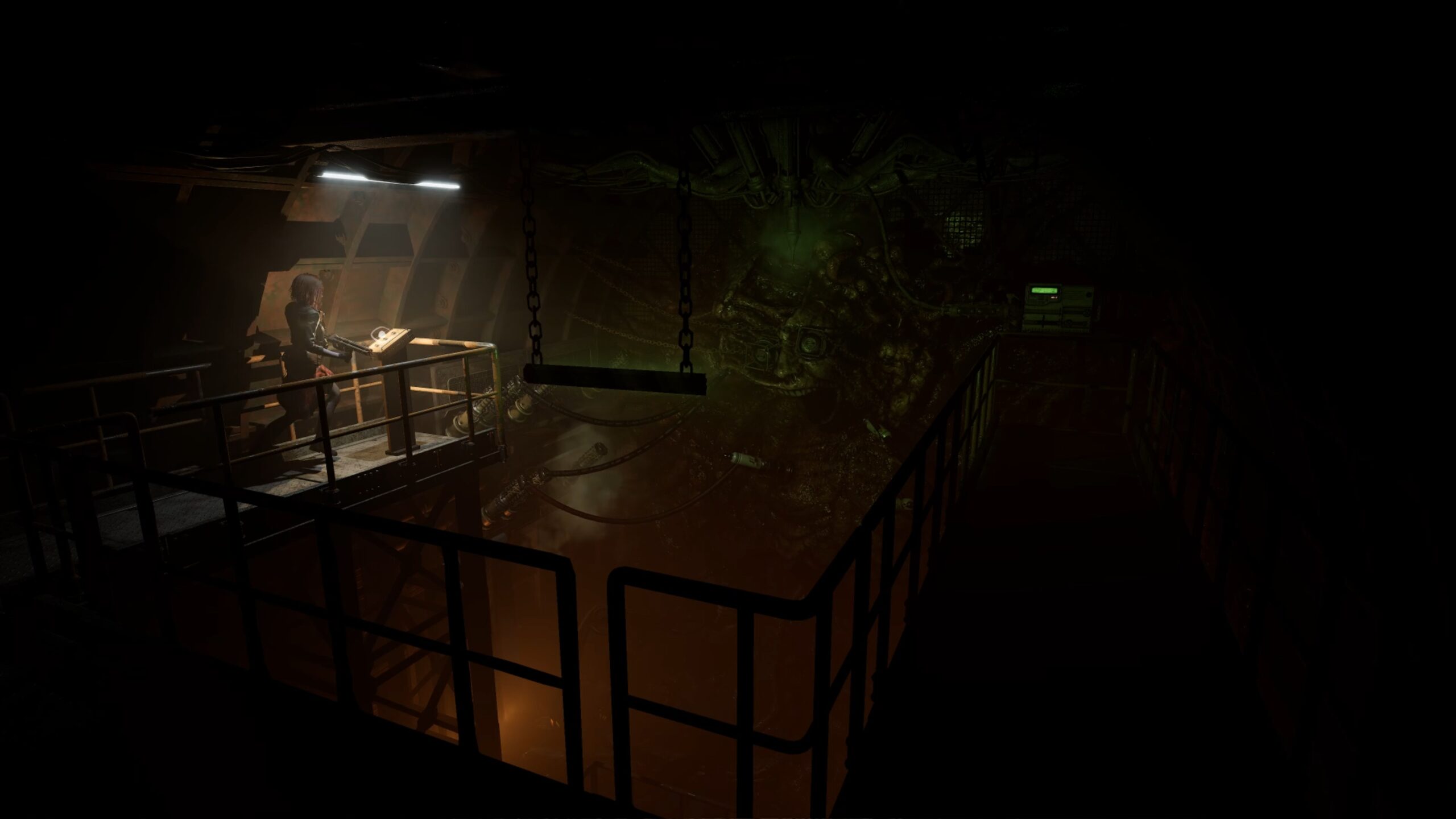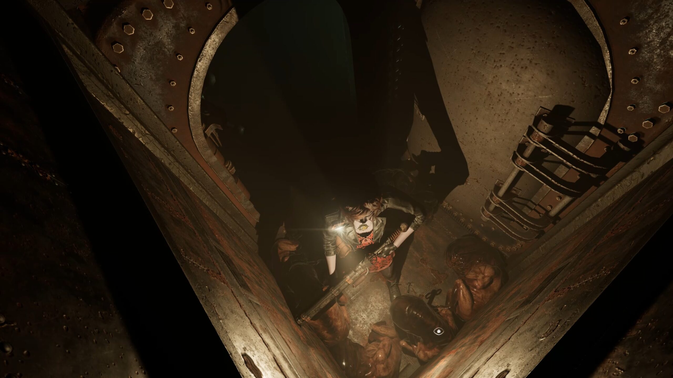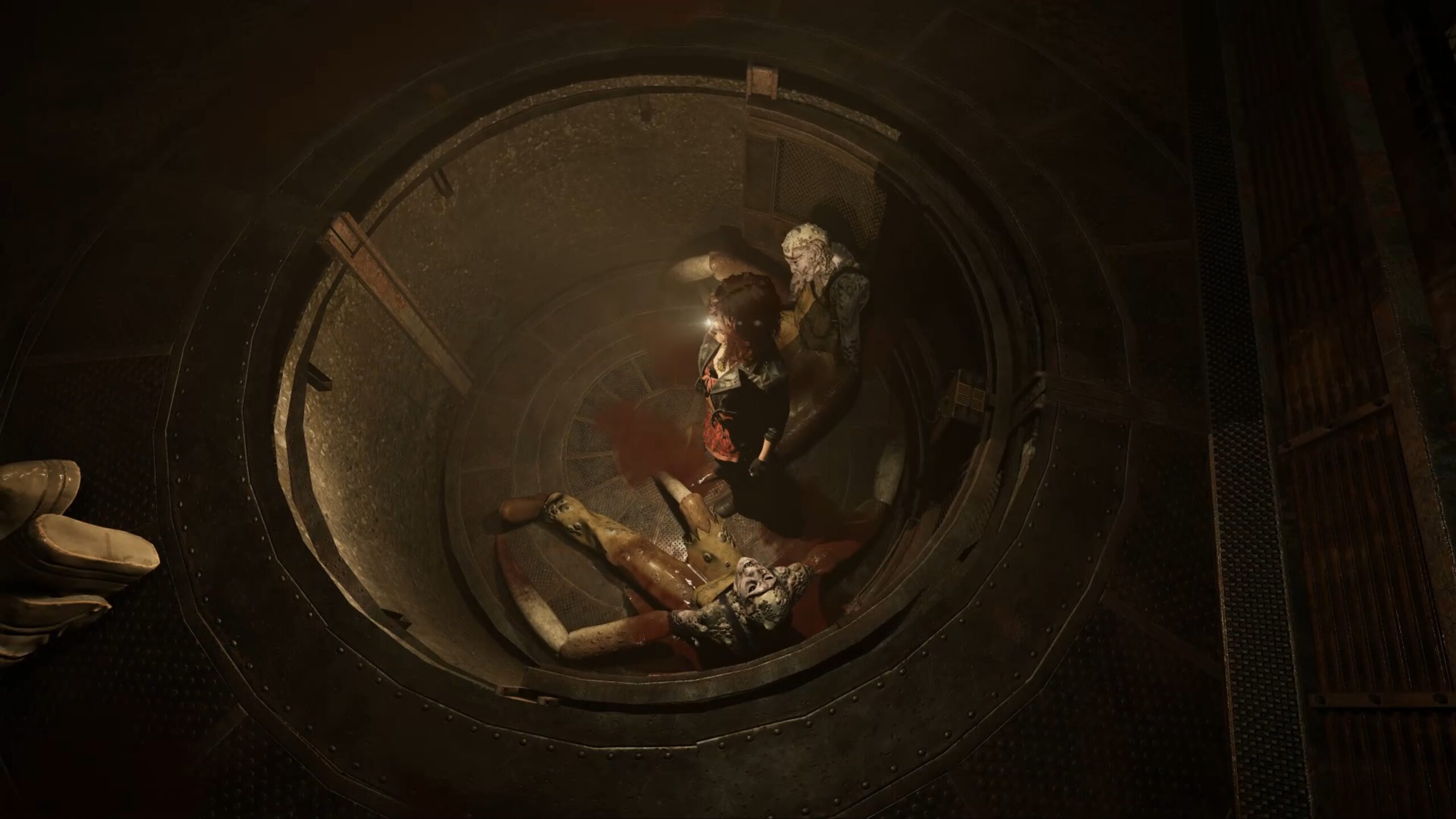 Allez ensuite au bout du couloir circulaire et franchissez la porte du quartier du confinement. Utilisez l’ascenseur pour descendre au niveau inférieur et récupérez, au fond de la pièce, une seringue dans une cuve. Rejoignez ensuite l’autre extrémité du couloir en restant vigilant face aux menaces.