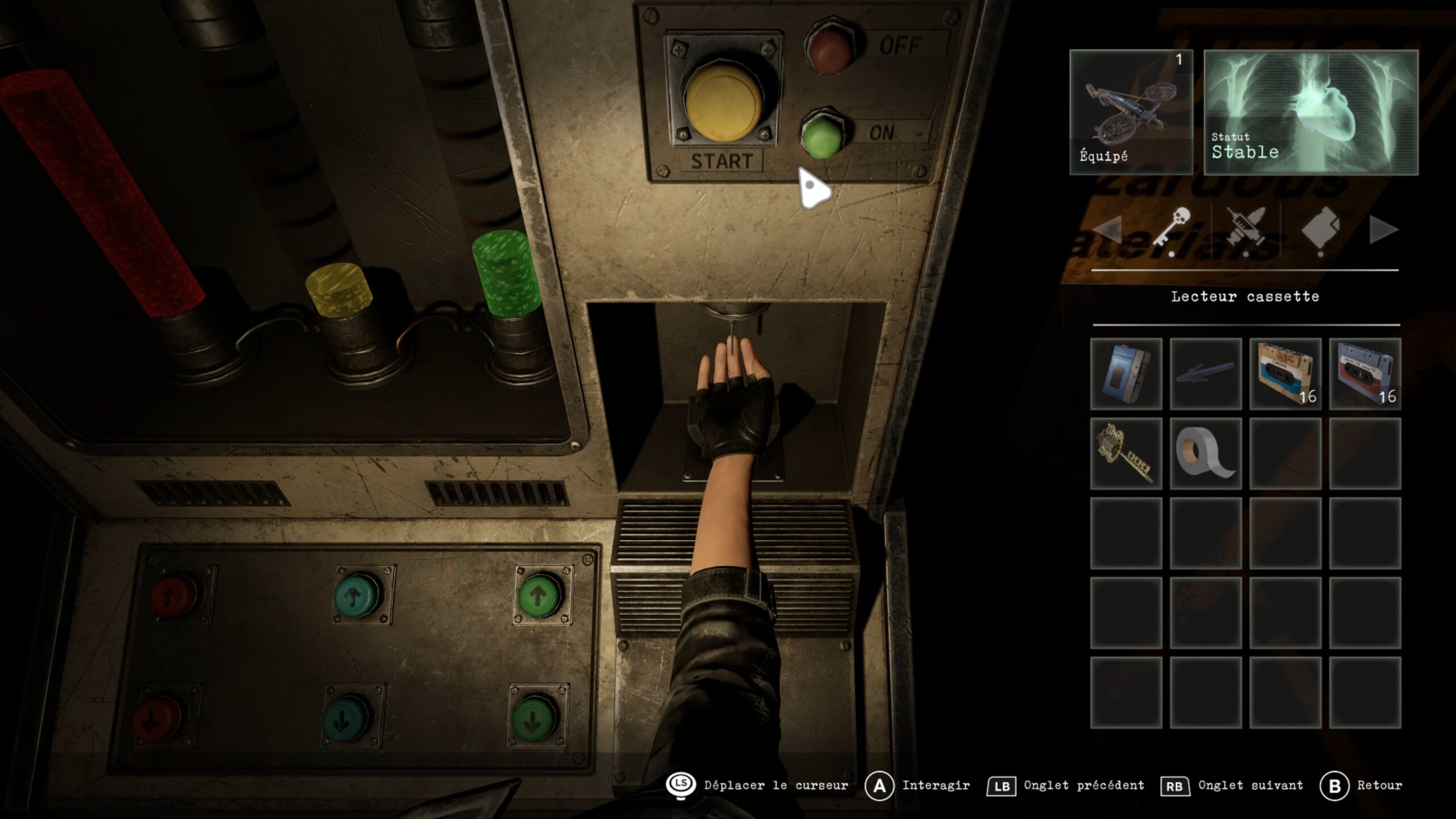De l’autre côté, prenez l’ascenseur pour descendre au niveau du bunker. Utilisez votre main pour passer le premier contrôle, puis dirigez-vous vers le bureau du bunker pour récupérer un indice. Ensuite, accédez à la salle principale du bunker pour interagir avec la machine. Réglez le tube rouge au maximum, le tube jaune sur 1 et le tube vert sur 2. Enfin, utilisez votre main pour vous injecter le virus. Attention vous devez, vous injecter le vaccin (voir article plus loin) avant d’entrer dans la chambre de réssurection, sous peine d’un Game Over.