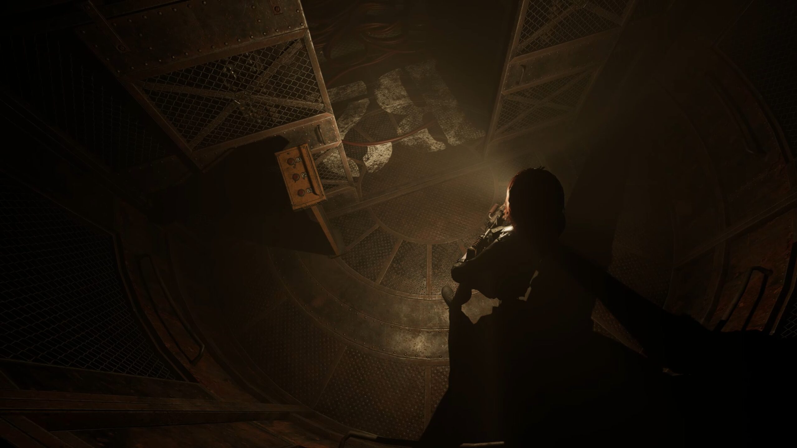 Allez ensuite dans le passage de l’ascenseur pour récupérer une bougie d’allumage. Rejoignez la salle du générateur pour monter au niveau supérieur et placez la bougie d’allumage à son emplacement. Tirez une première fois le levier du générateur lorsque les disques sont ouverts, puis appuyez sur l’interrupteur à proximité une fois qu’il devient vert. Ensuite, tirez de nouveau le levier pour mettre les disques en contact et réactiver le courant. Retournez enfin dans le passage de l’ascenseur et utilisez-le pour descendre au niveau B2.