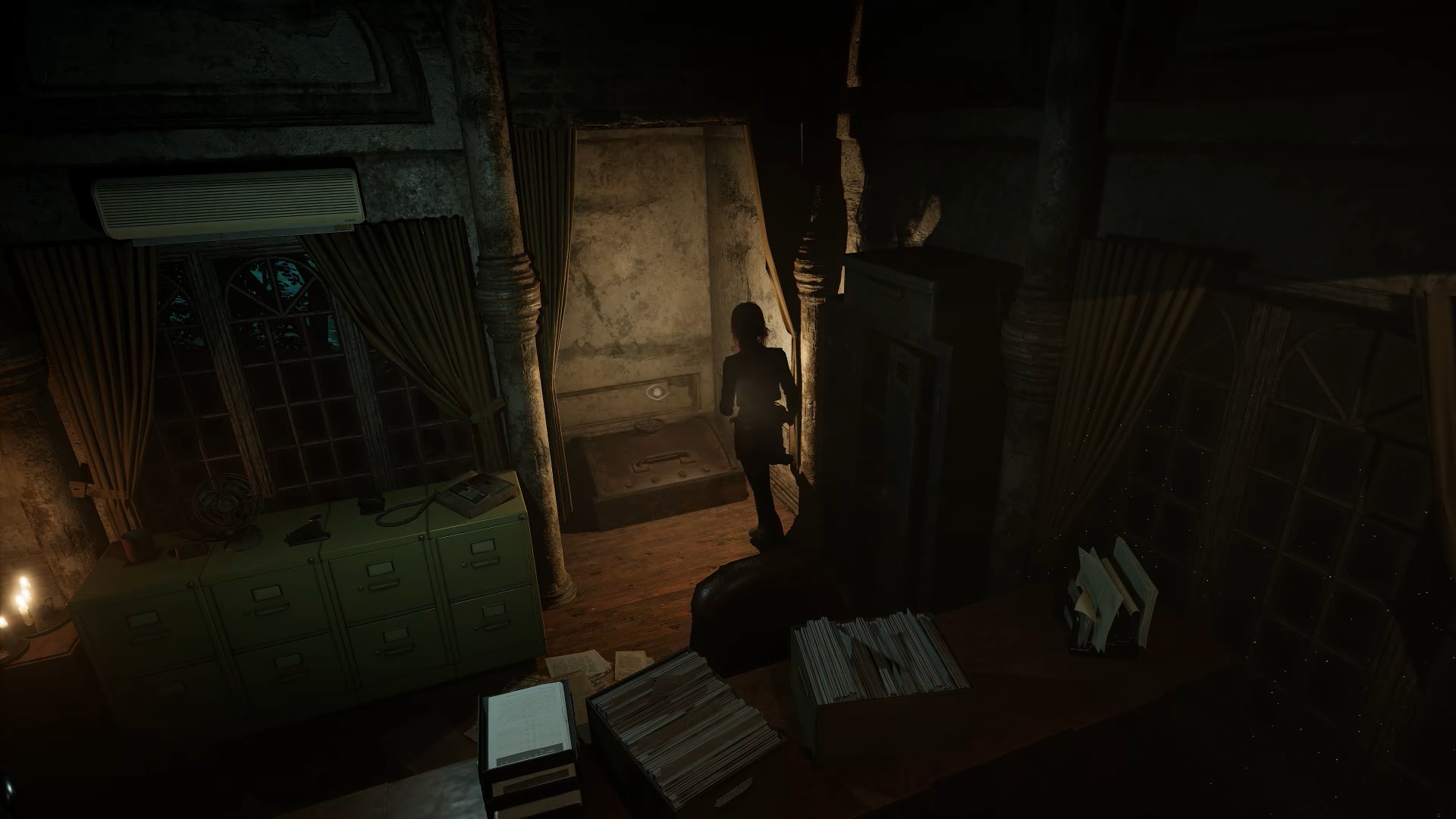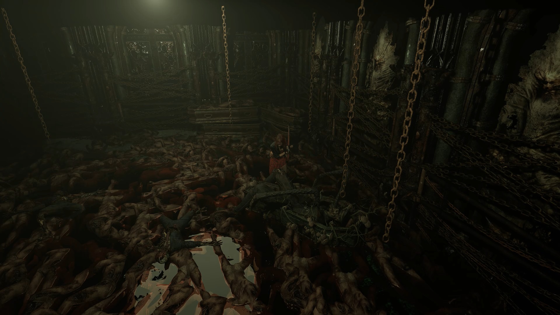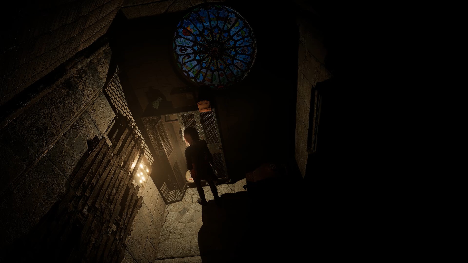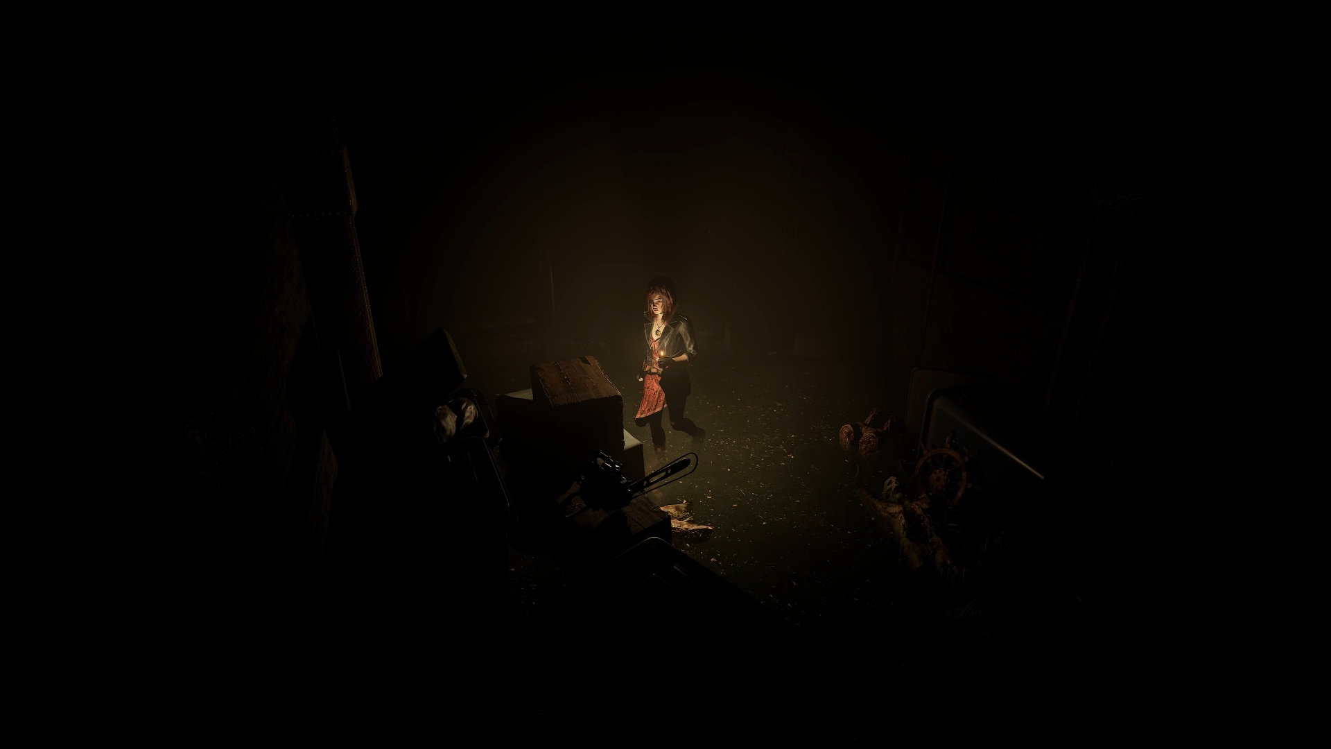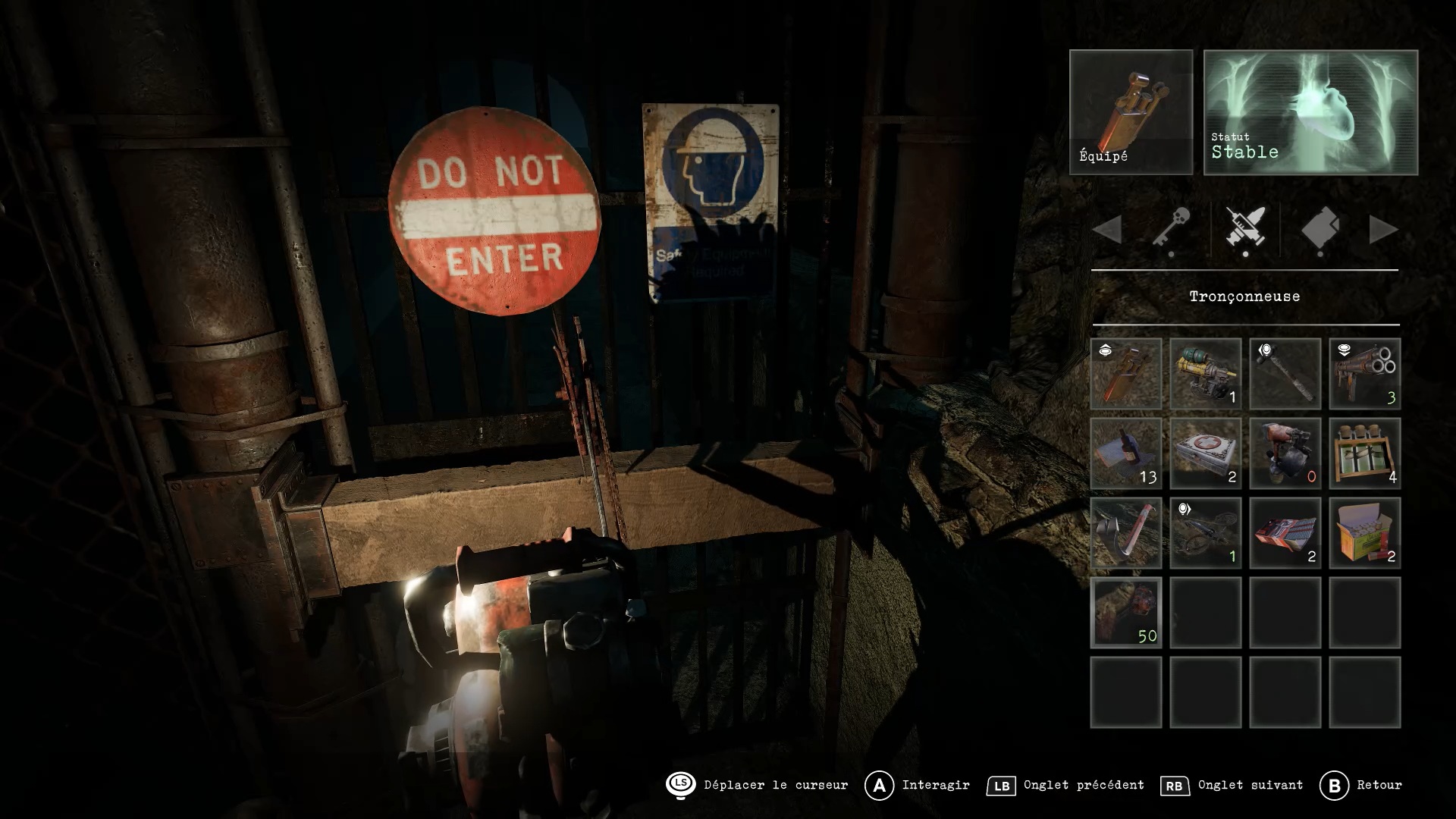 Après le combat, récupérez la scie au sol. Sortez de l’arène en passant par la trappe. Examinez ensuite la pénombre de la réception pour trouver une tronçonneuse. Rejoignez l’aile inférieure pour atteindre la porte d’entrée et utilisez la tronçonneuse sur la poutre afin de sortir de l’usine.