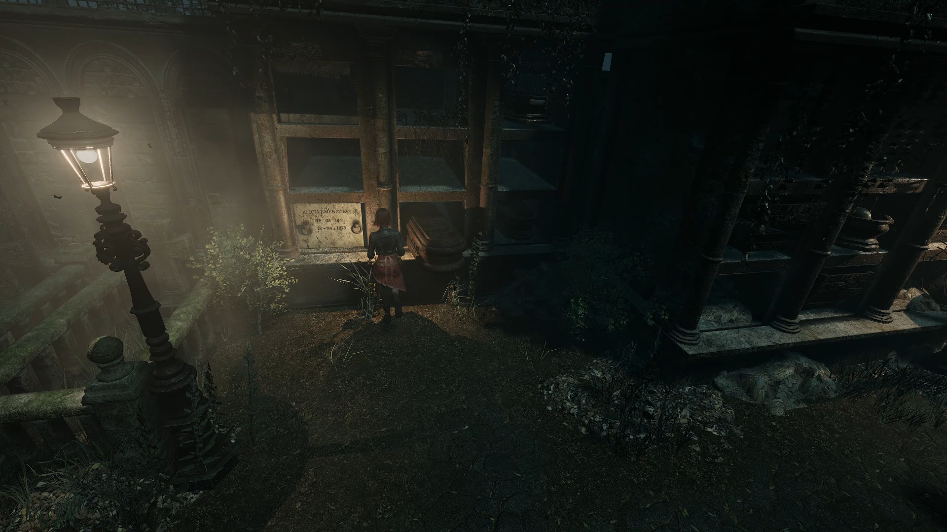 Descendez les escaliers du quartier commercial menant à l’usine pour trouver en dessous un passage bloqué par une poutre. Utilisez à nouveau la tronçonneuse pour dégager le passage. Avancez jusqu’à l’autre bout du tunnel pour franchir un portail et atteindre le cimetière.
