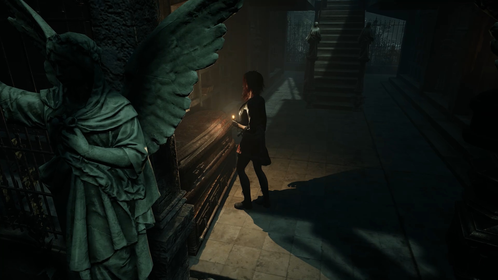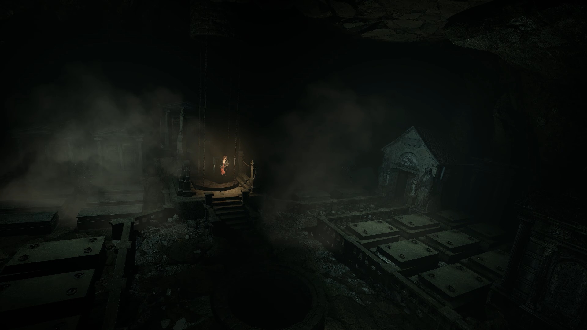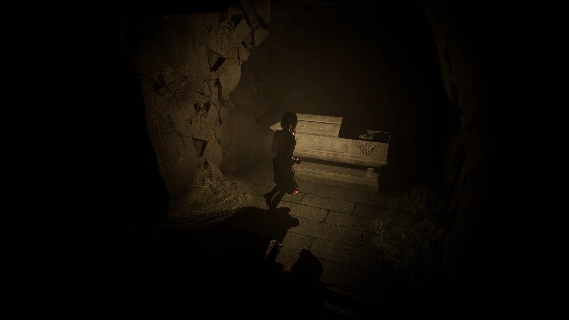 Foncez ensuite vers le centre du cimetière pour rejoindre une tombe. Placez les métaux sur celle-ci afin de former le mot PEDRO. Enfoncez-vous ensuite dans les catacombes pour trouver une tombe et y récupérer une épée en marbre. Survivez à la horde d’ennemis pour pouvoir ressortir vers la chambre funéraire par la porte en bois du tunnel.