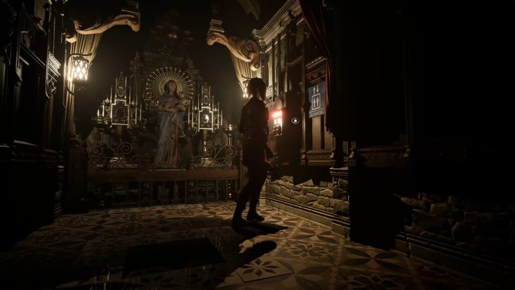 Déplacez ensuite le chariot face à la porte afin de pouvoir quitter la pièce. Dirigez-vous vers le couloir éclairé pour récupérer le carnet d’Anna, puis passez la porte à proximité pour trouver une pince à l’intérieur d’une malle. Retournez ensuite dans le couloir jusqu’à la statue de la nonne Lucia, puis franchissez la porte située sur sa droite pour entrer dans le clocher.
