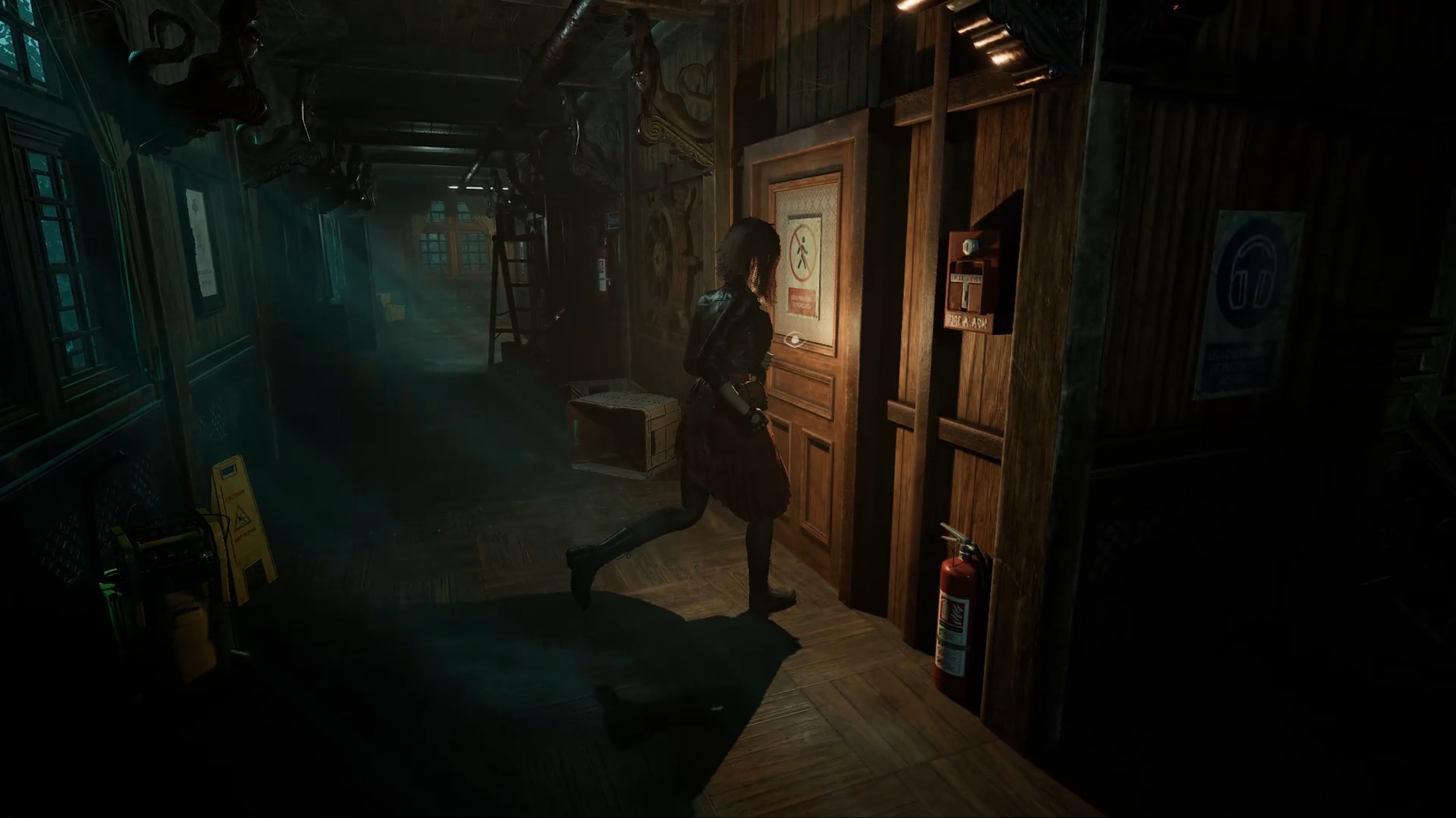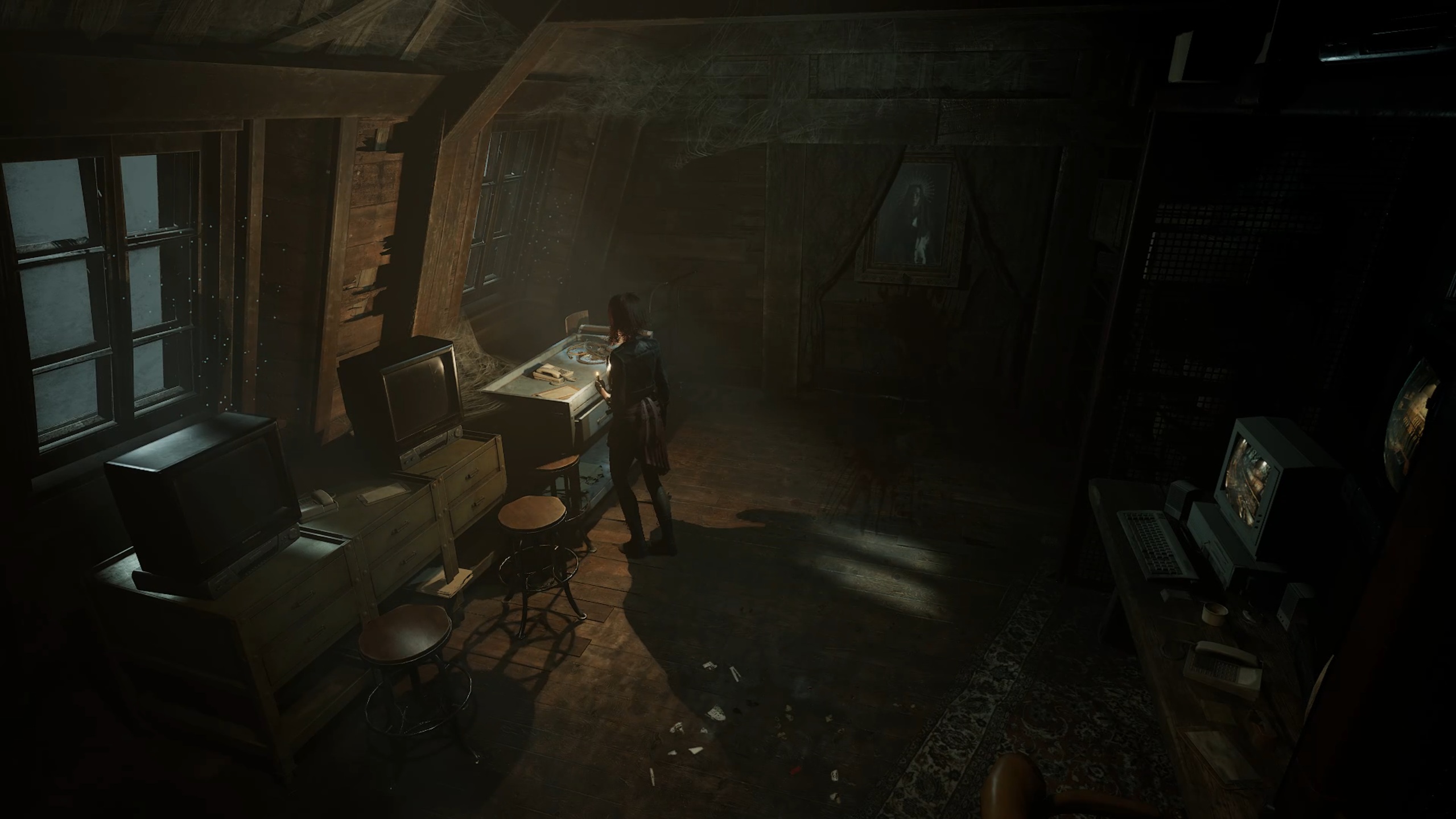 Retournez au niveau inférieur et utilisez le pied-de-biche pour briser les caisses, révélant ainsi un ascenseur. Activez-le pour descendre au sous-sol, puis avancez jusqu’à atteindre la salle du congélateur. Entrez dans l’un des conteneurs pour y découvrir un tableau. Examinez la dame sur le tableau afin de trouver un interrupteur qui ouvrira un passage caché.