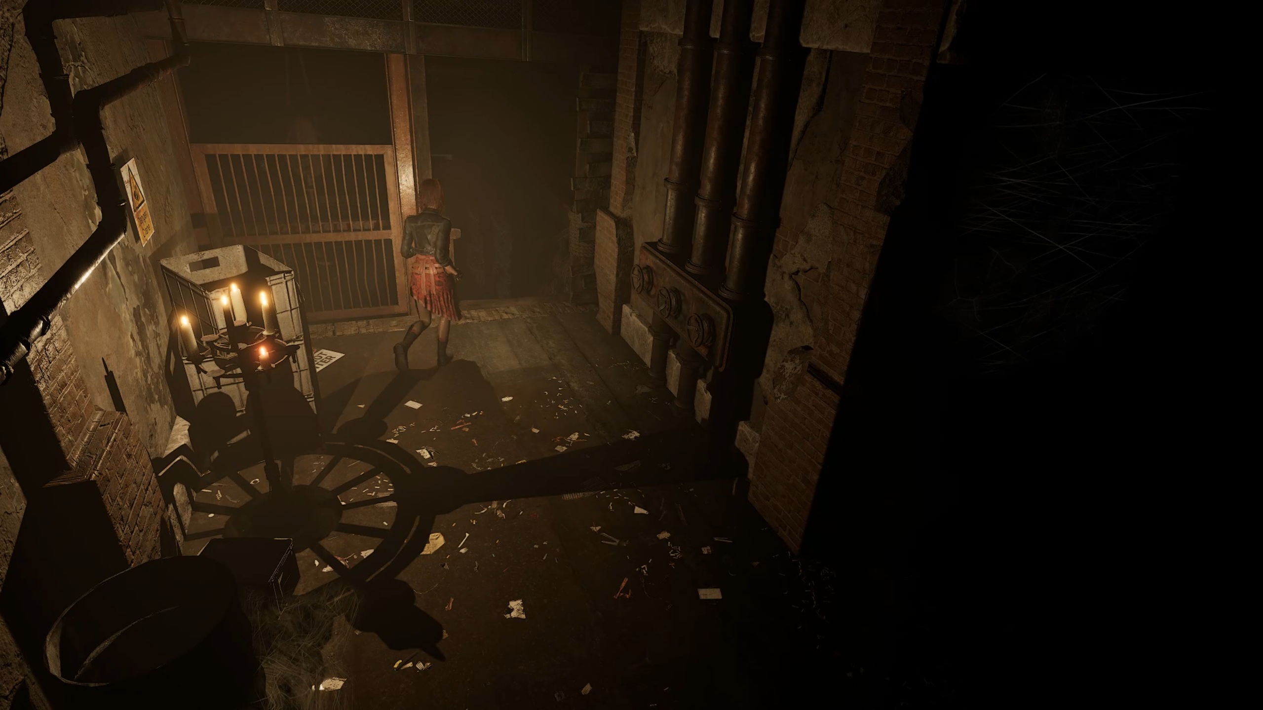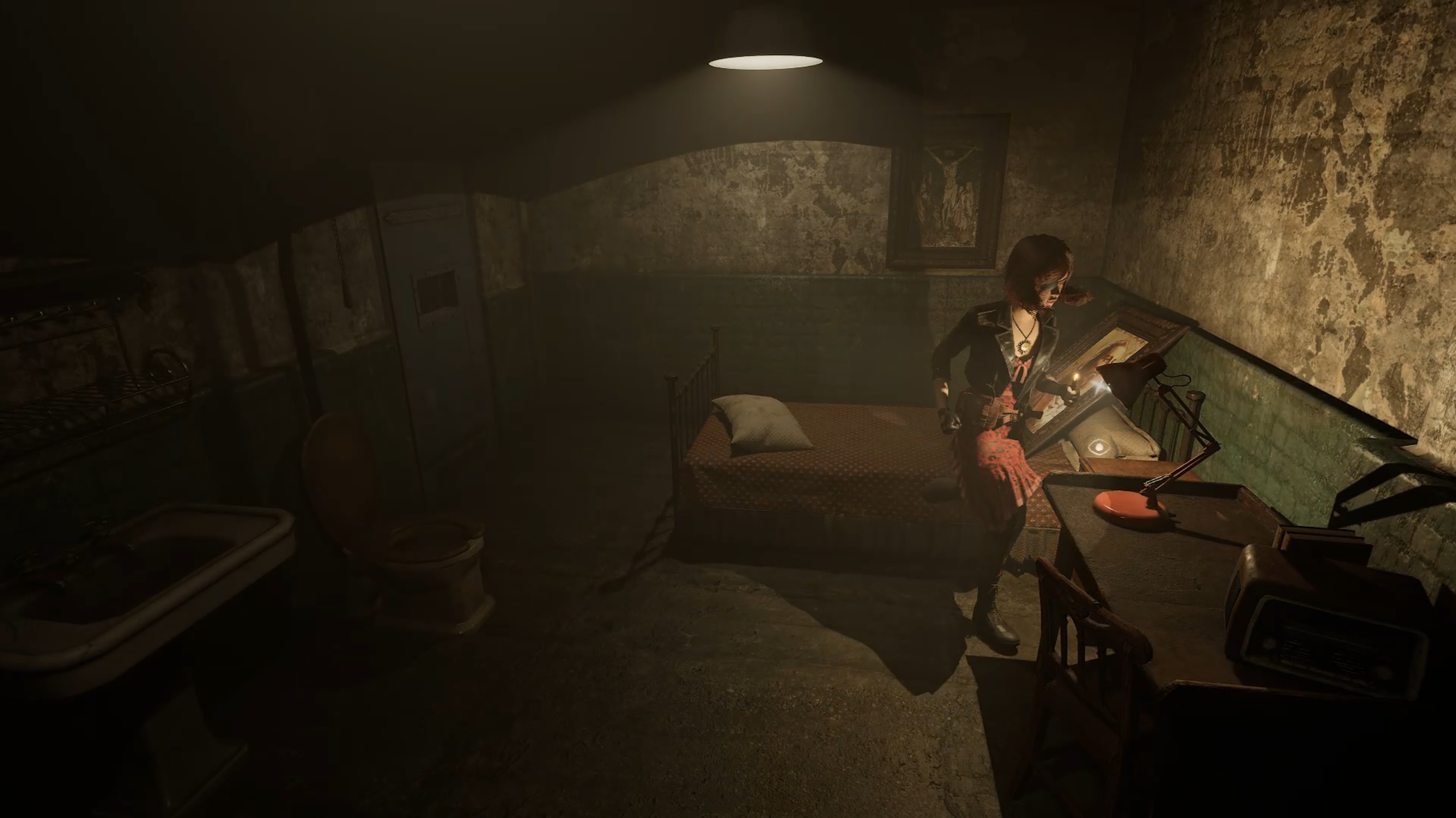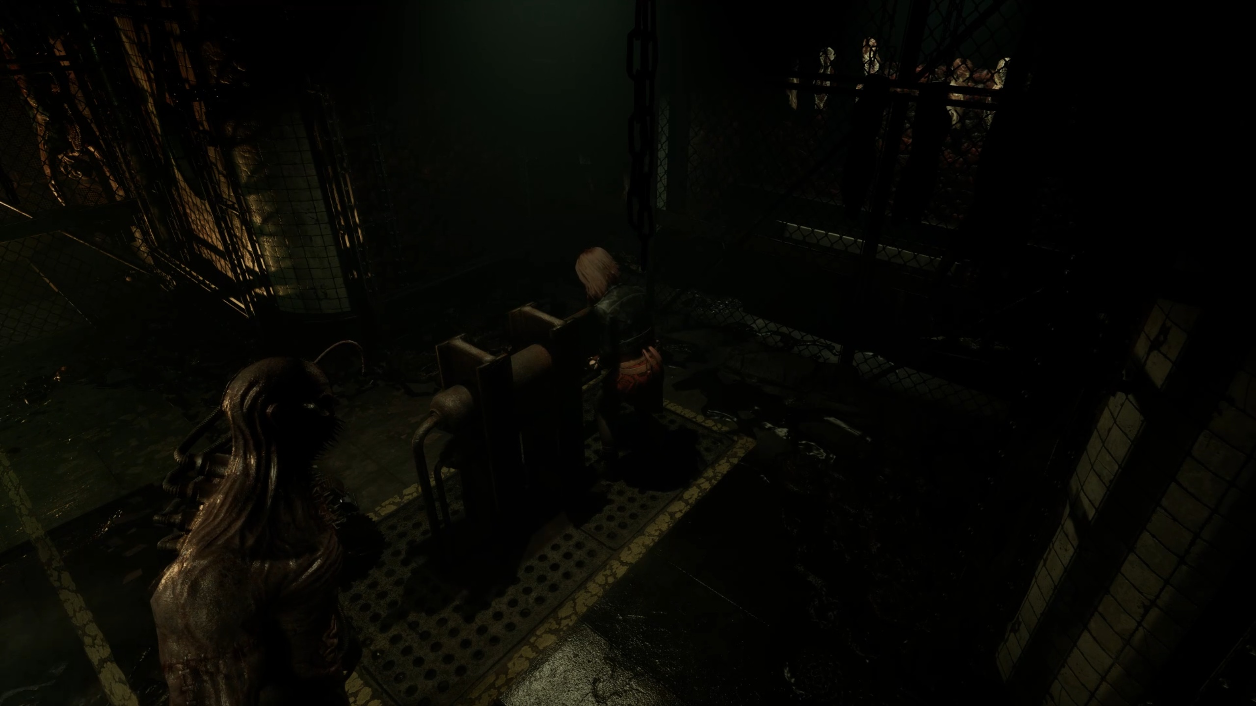 Dans la cellule, récupérez l’ampoule, puis utilisez la cloueuse contre la porte pour tirer sur l’interrupteur et vous libérer. Dirigez-vous ensuite vers l’autre extrémité du couloir du sous-sol pour insérer l’ampoule dans une douille. Enfin, utilisez le pied-de-biche pour détruire les caisses et empruntez le nouvel ascenseur.