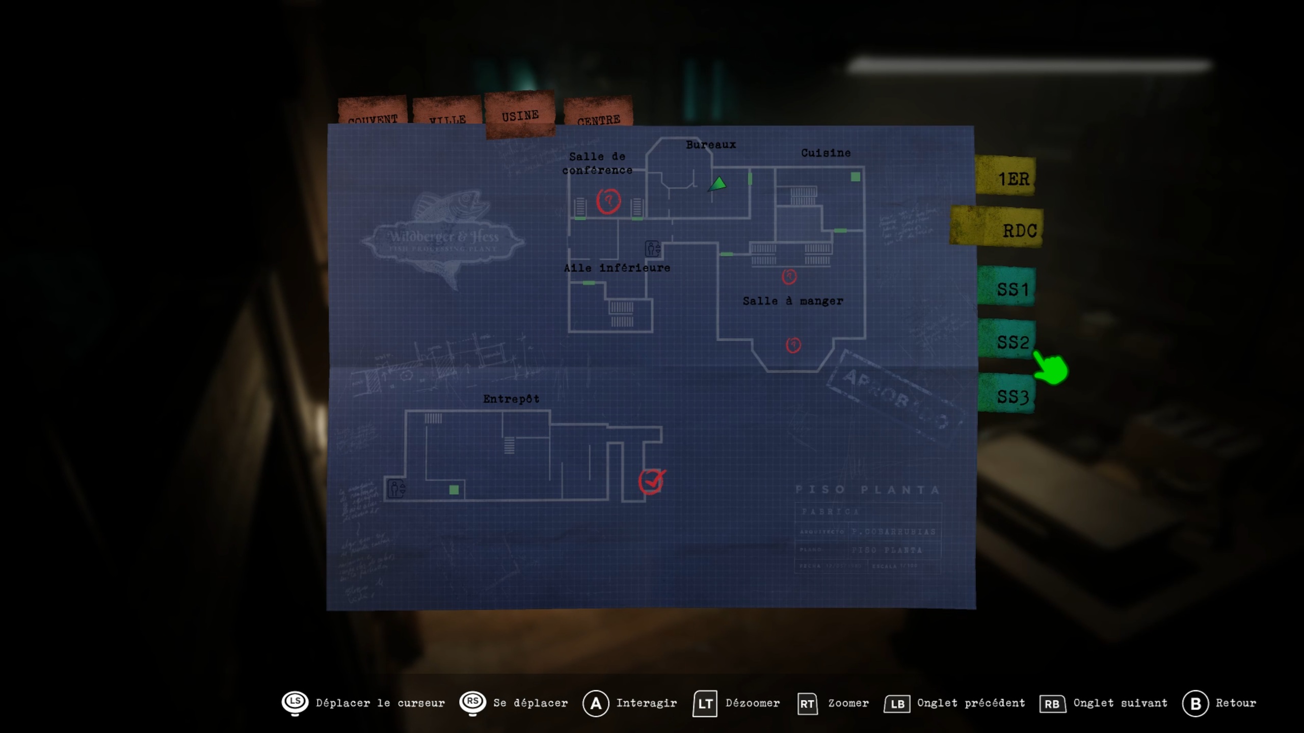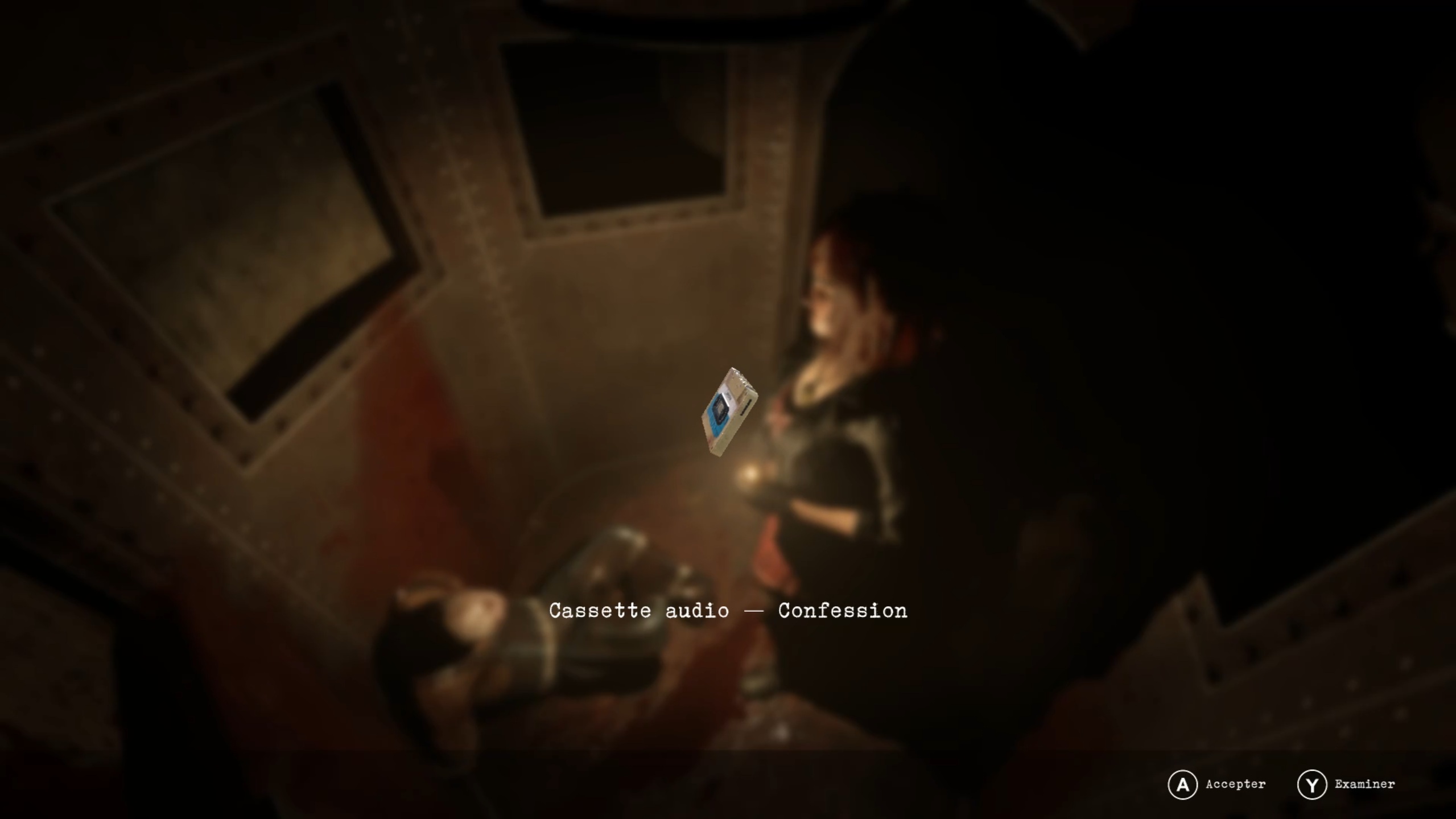 Redescendez ensuite dans les cuisines, déplacez un four pour trouver une trappe menant à la pièce de décontamination. Insérez la plaque dans le premier interrupteur, passez dans le couloir à proximité, allez au fond et actionnez un bouton pour ouvrir les cuves. Examinez-les : vous trouverez une cassette dans l’une d’elles.