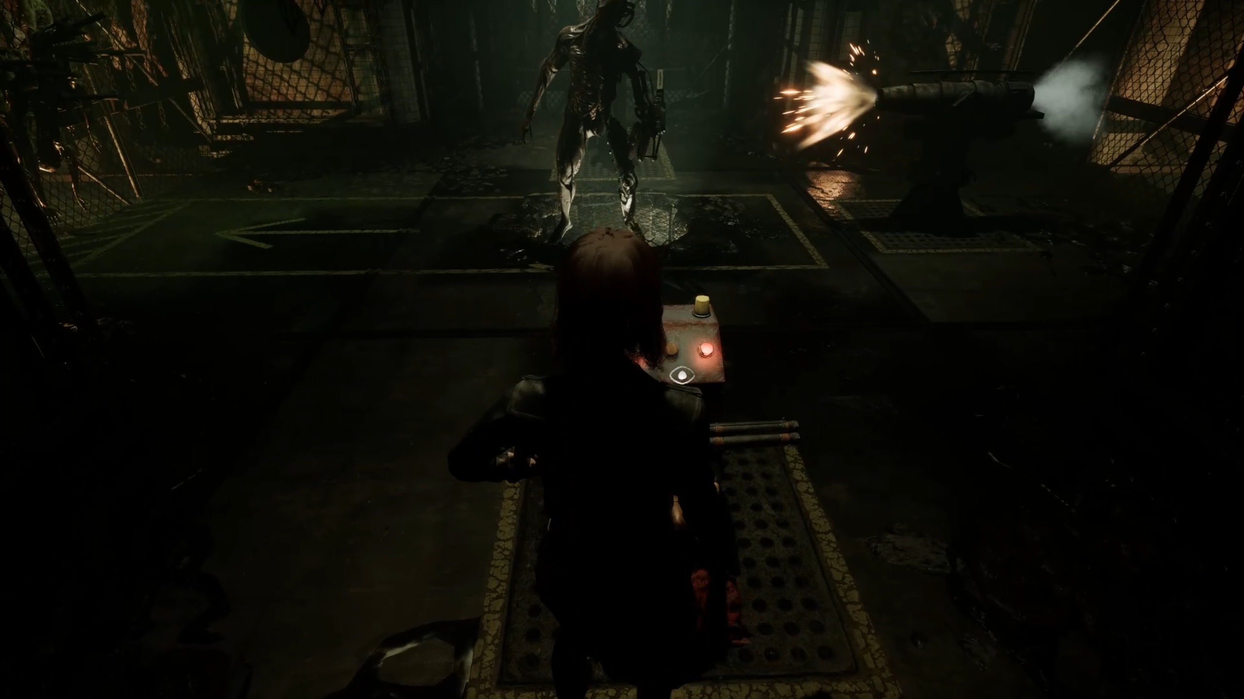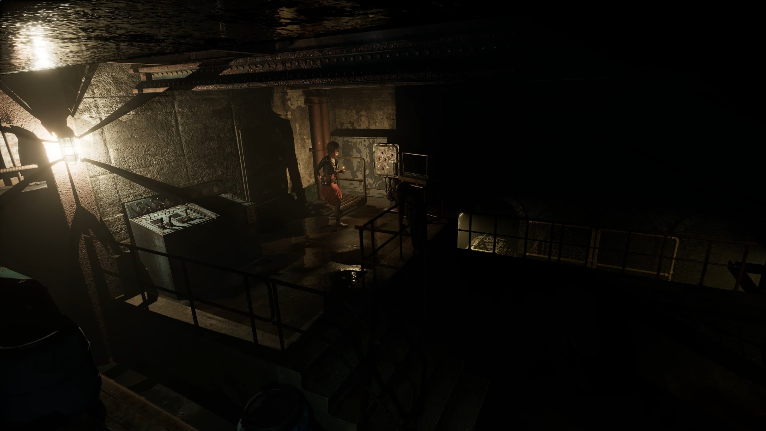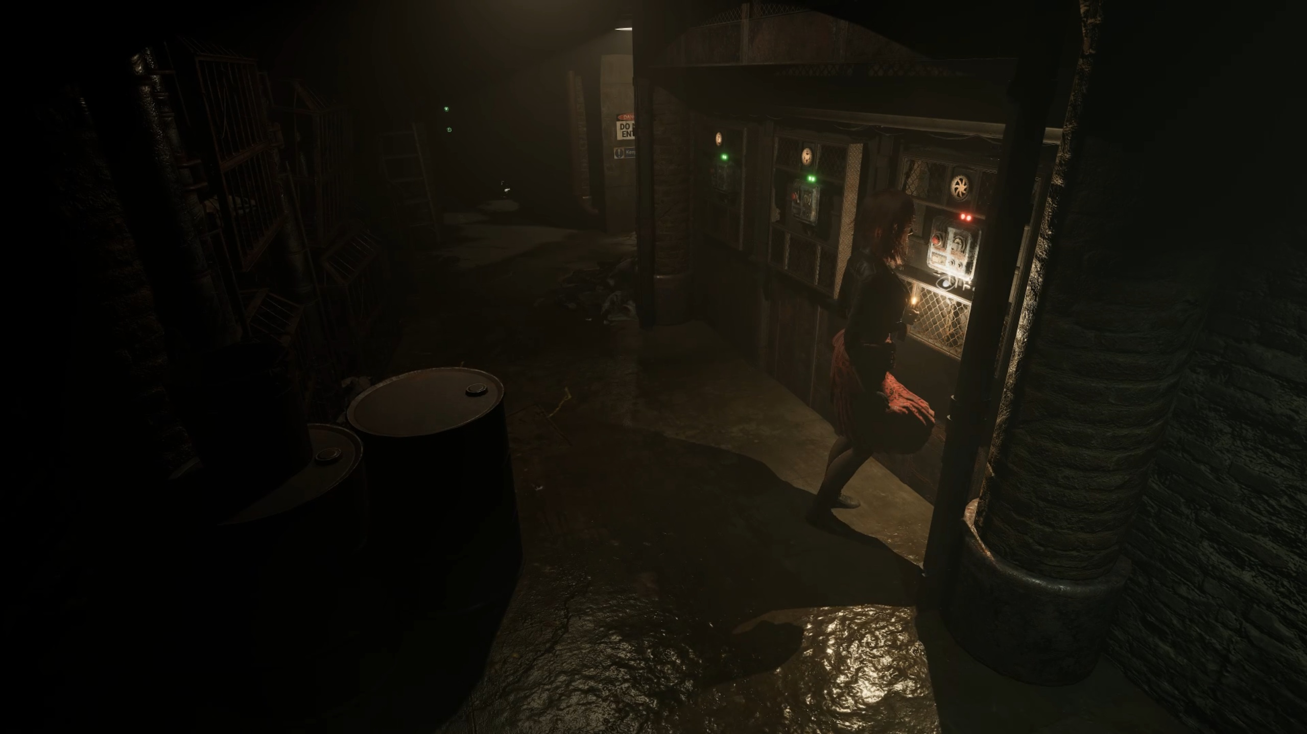 Rejoignez une nouvelle fois le sous-sol pour trouver une porte blindée ; insérez la cassette dans le lecteur, faites-la tourner et activez le micro pour que le mot de passe soit diffusé, puis franchissez la porte et traversez la salle du générateur pour atteindre la décharge ; faites le tour de la pièce, utilisez une échelle pour monter jusqu’à l’entrepôt, rejoignez une plateforme et interagissez avec un écran pour lancer un puzzle.