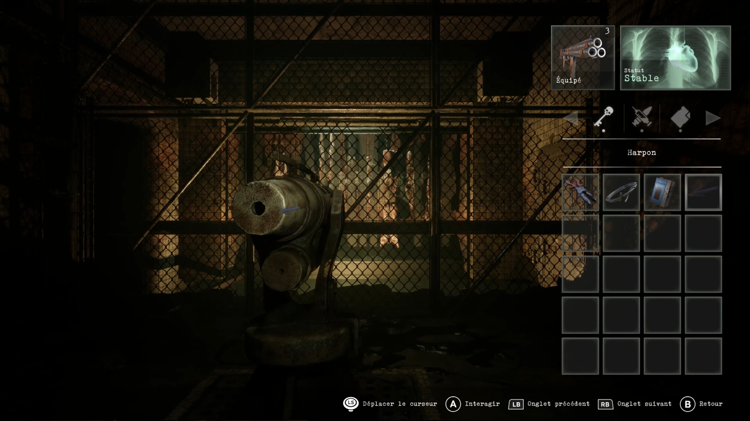 Pour vaincre le boss de l’usine, commencez par récupérer le harpon sur le corps. Utilisez ensuite vos armes pour affaiblir et ralentir le monstre.